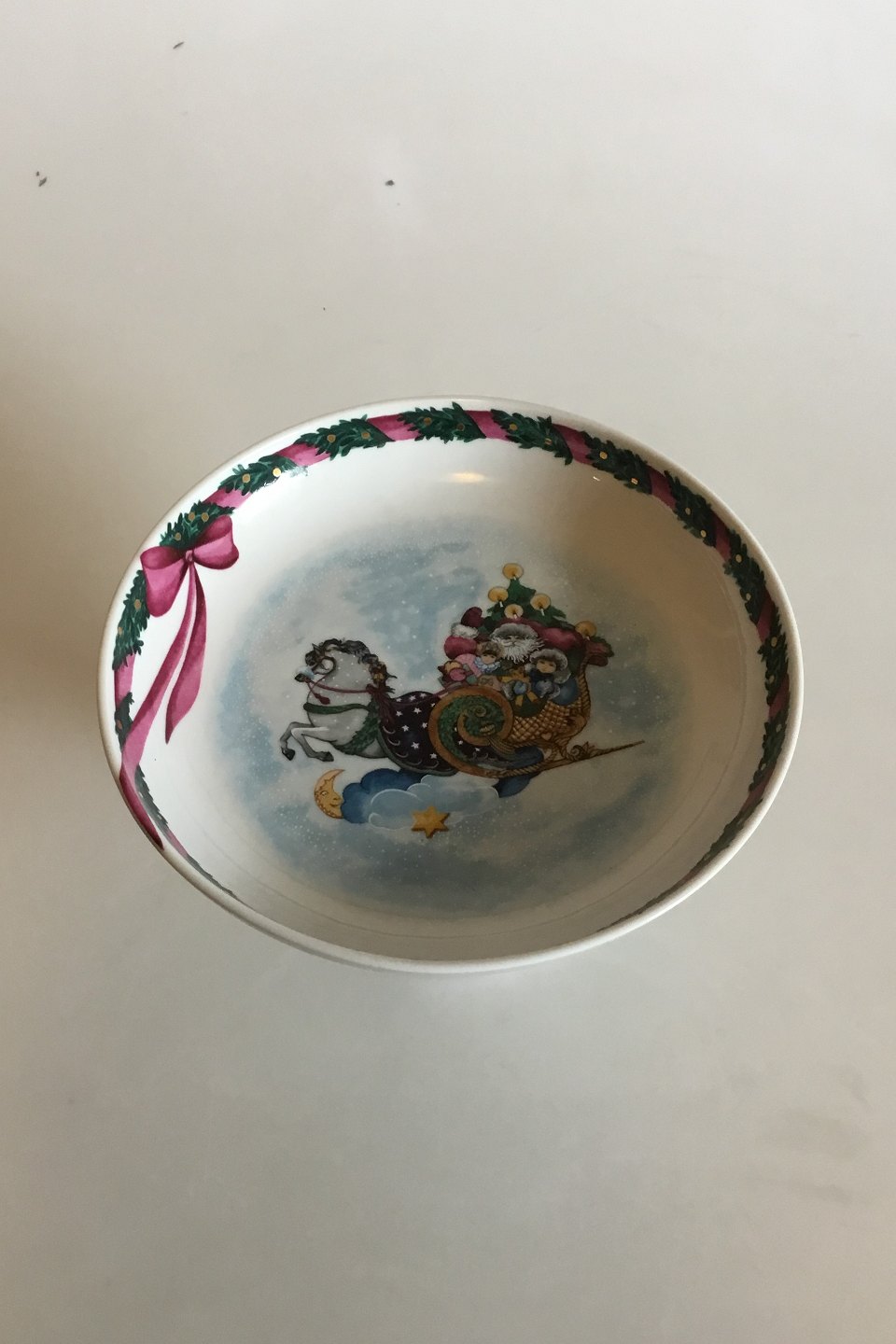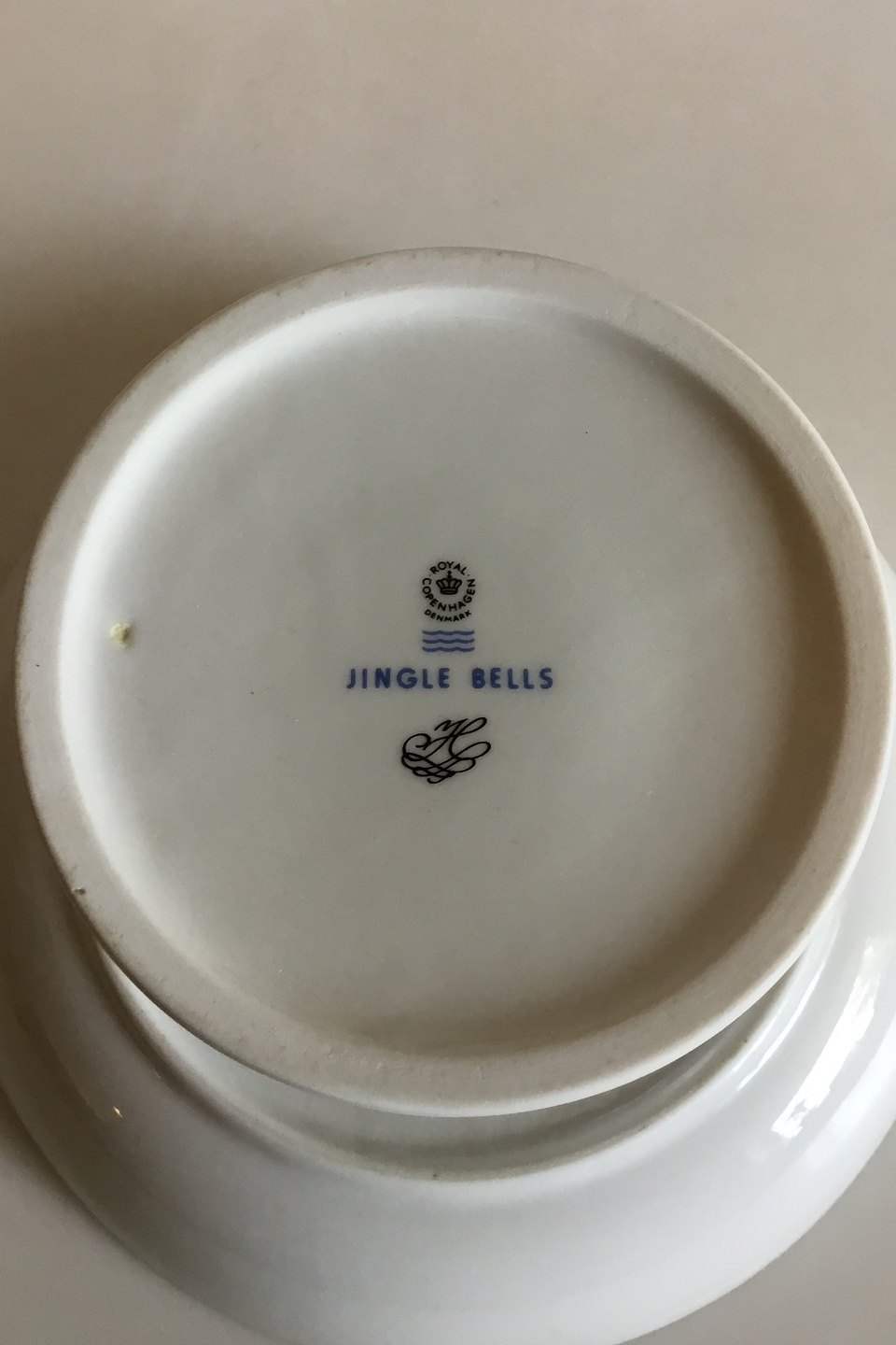 Royal Copenhagen Jingle Bells Kagefad på fod. Måler 13 cm x 21,3 cm dia.