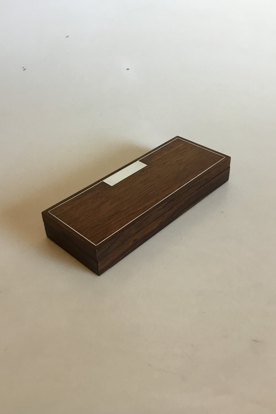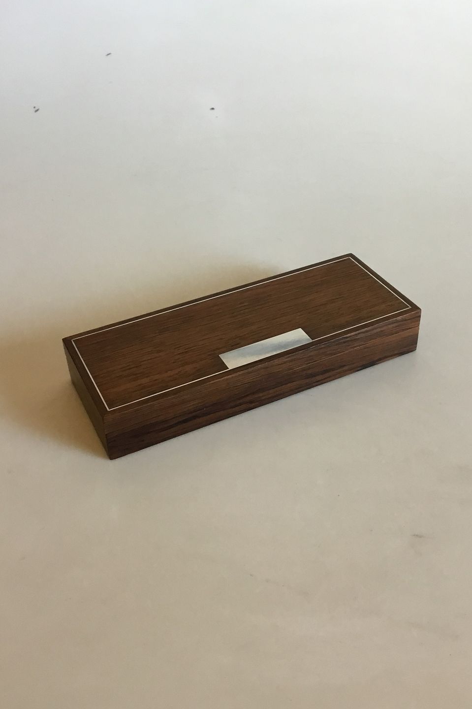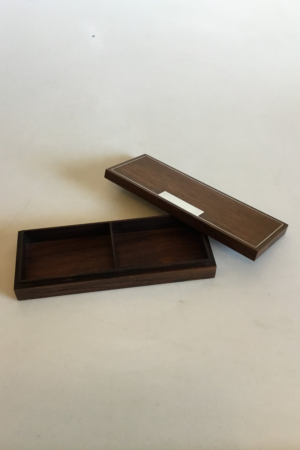 Hans Hansen Palisanderæske med to rum og løst låg med Sterlingsølv indlæg. Måler 20,9 cm x 8 cm x 3,2 cm