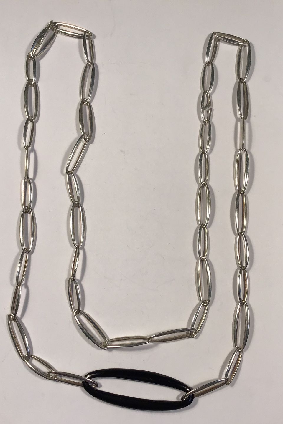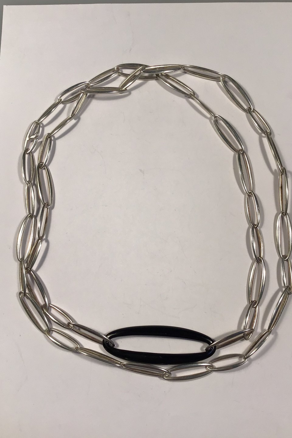 Georg Jensen Sterling Sølv Halskæde "Zephyr" No 500B med sort Agat af Regitze Overgaard L 112 cm Vægt 78 gr