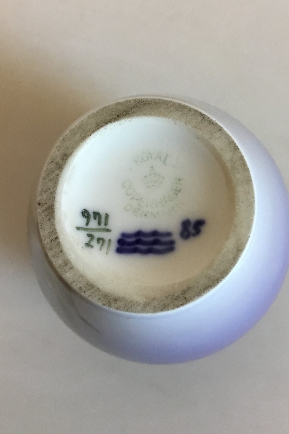 Royal Copenhagen Blue Vase with Anthurium No 971/271. Measures 11.2 cm / 4 13/32 in.