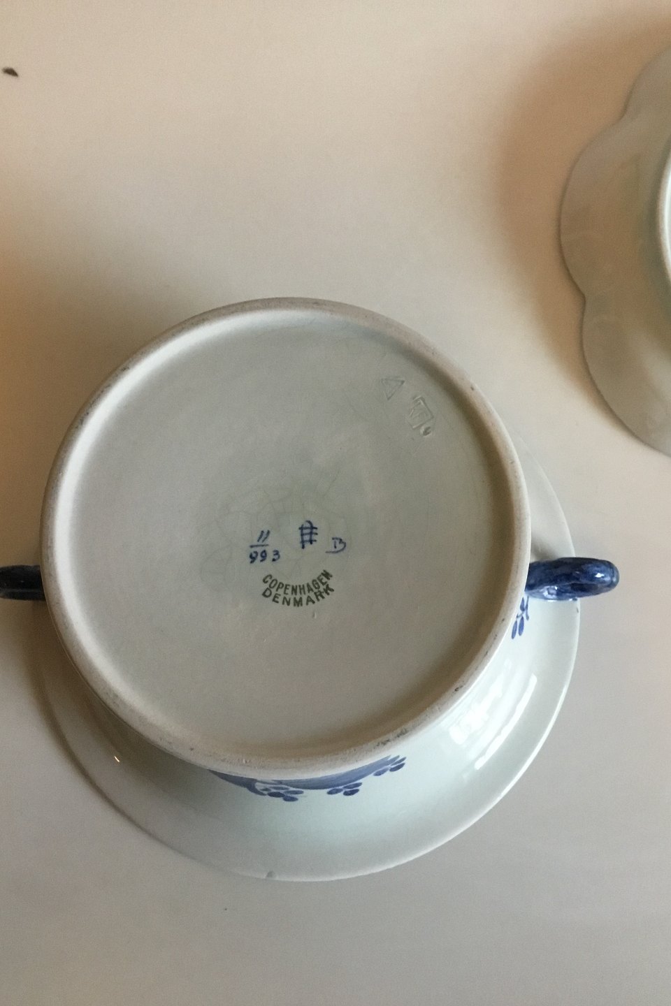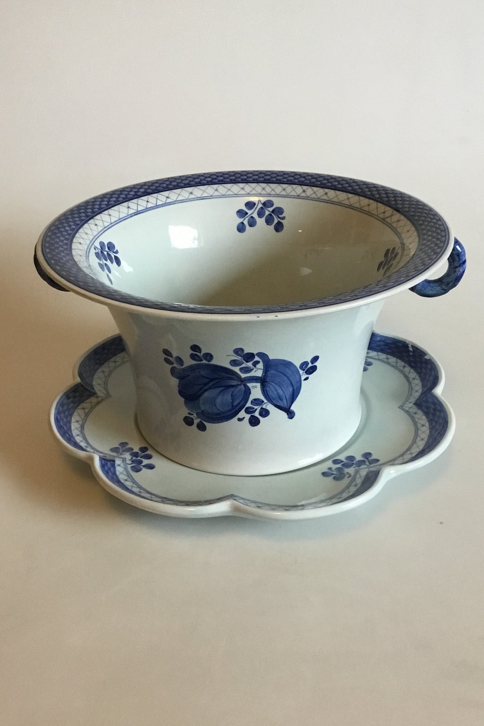 Royal Copenhagen/Aluminia Blue Tranquebar Wine Cooler with Saucer No 11/993. Measures 15.5 cm / 6 7/64 in. With Chips and Repair