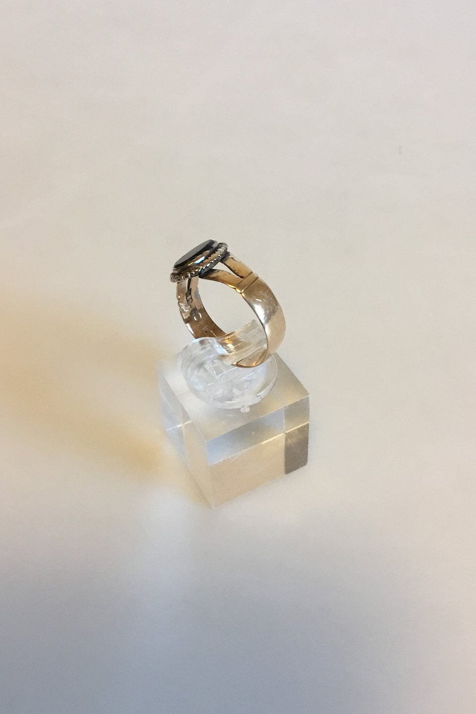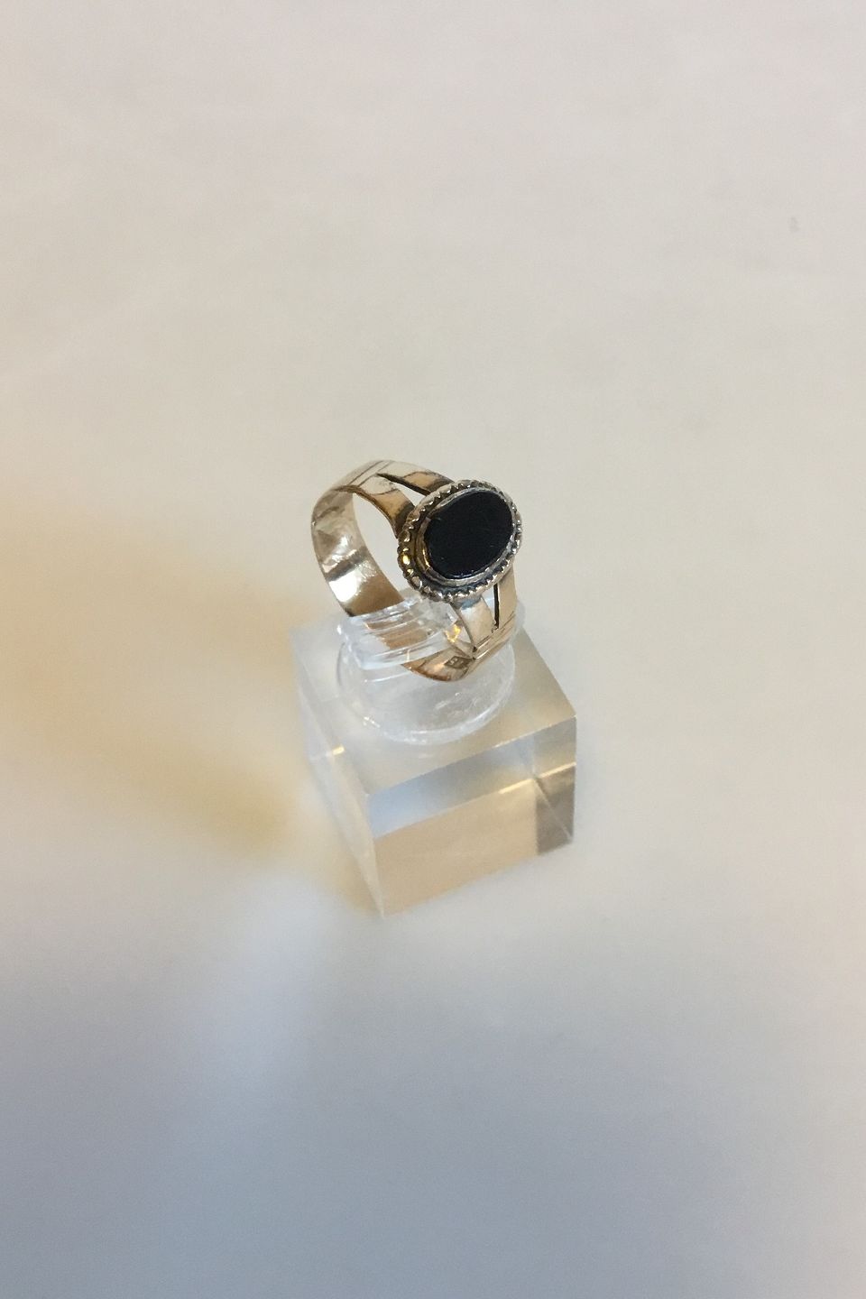 Guld Ring i 14 K med sort sten(Onyx?). Ringstørrelse 55. Vejer 2,4 gram