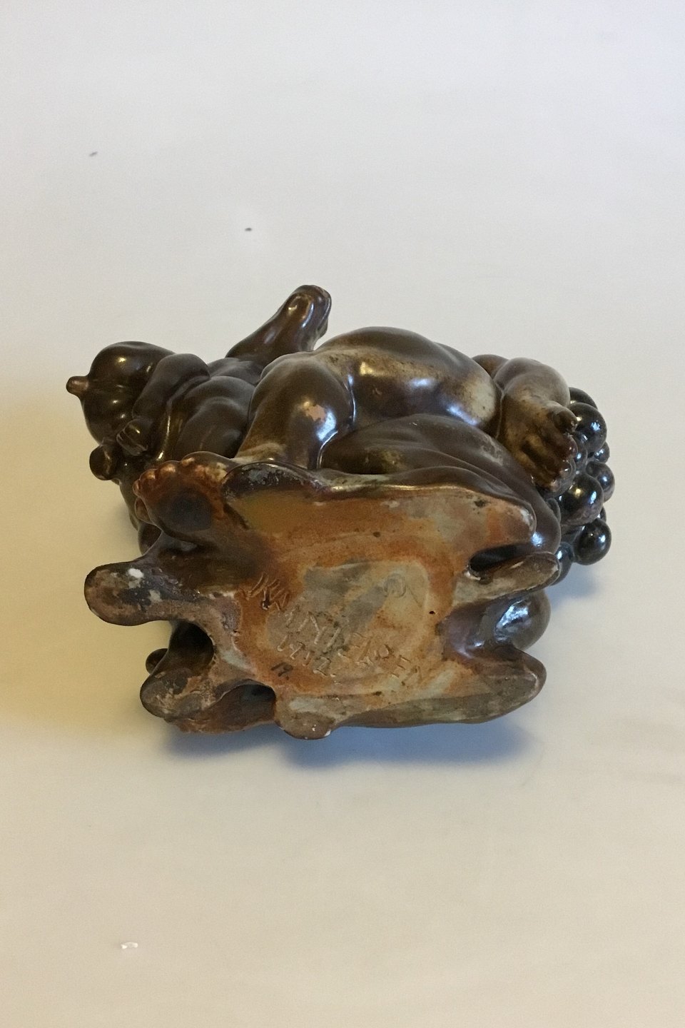 Bing and Grondahl Figurine by Kai Nielsen - Bacchus with Donkey and Faun No. 4026. Designed in approx. 1915. Measures 23 cm / 9 1/16 in. x 19 cm / 7 31/64 in.