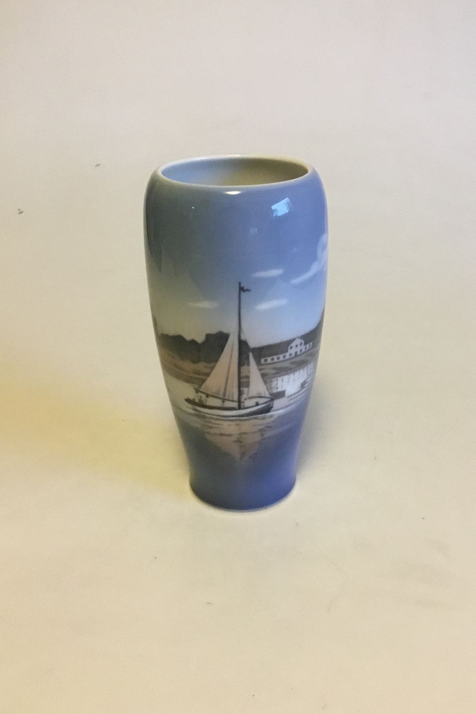 Royal Copenhagen Vase med sejlskib No 4468. Måler 17 cm