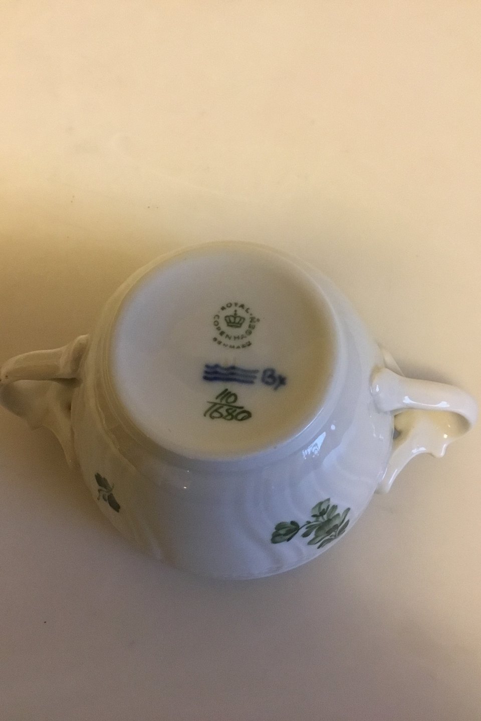 Royal Copenhagen Grøn Blomst Svejfet Sukkerskål uden låg No 1680. Måler 10 cm dia.