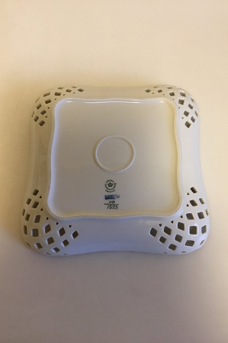 Royal Copenhagen Grøn Blomst Svejfet Firkantet Fad med gennembrudt kant No 1523. Måler 23 cm x 23 cm