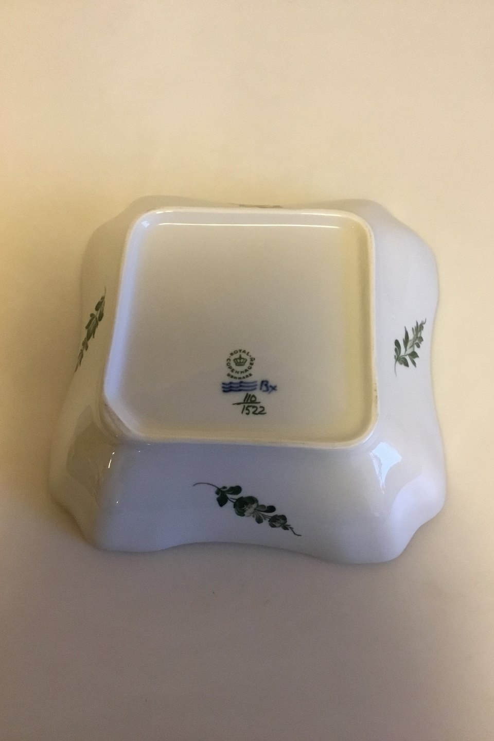Royal Copenhagen Grøn Blomst Svejfet Kartoffelfad No 1522. Måler 23 cm x 23 cm.