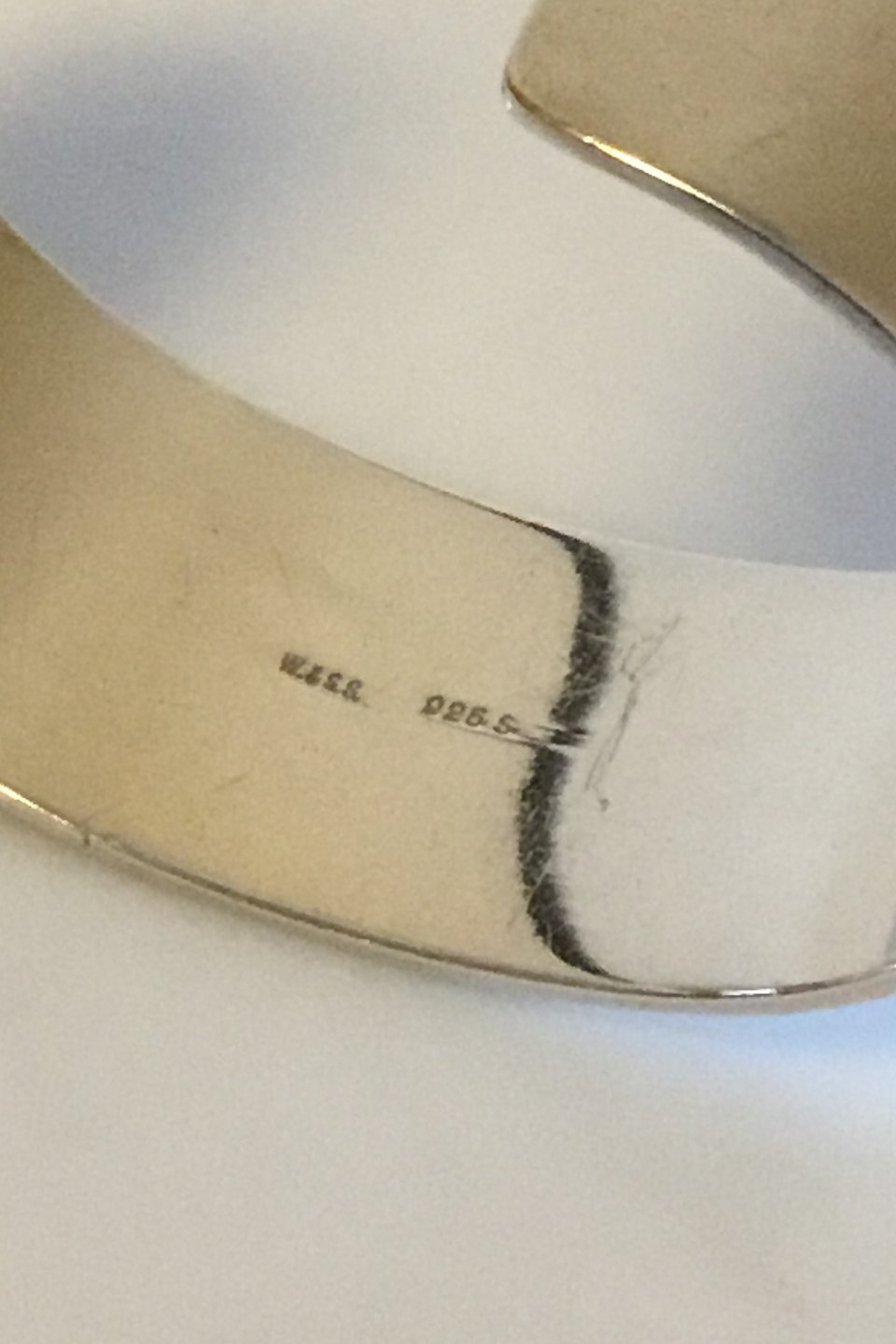 W.&S. Sorensen Sterling Silver Bangle/Bracelet. Measures 6.8 cm / 2 43/64 in. x 4.9 cm / 1 59/64 in. x 2.5 cm / 0 63/64 in. Weighs 60.8 g / 2.14 oz.