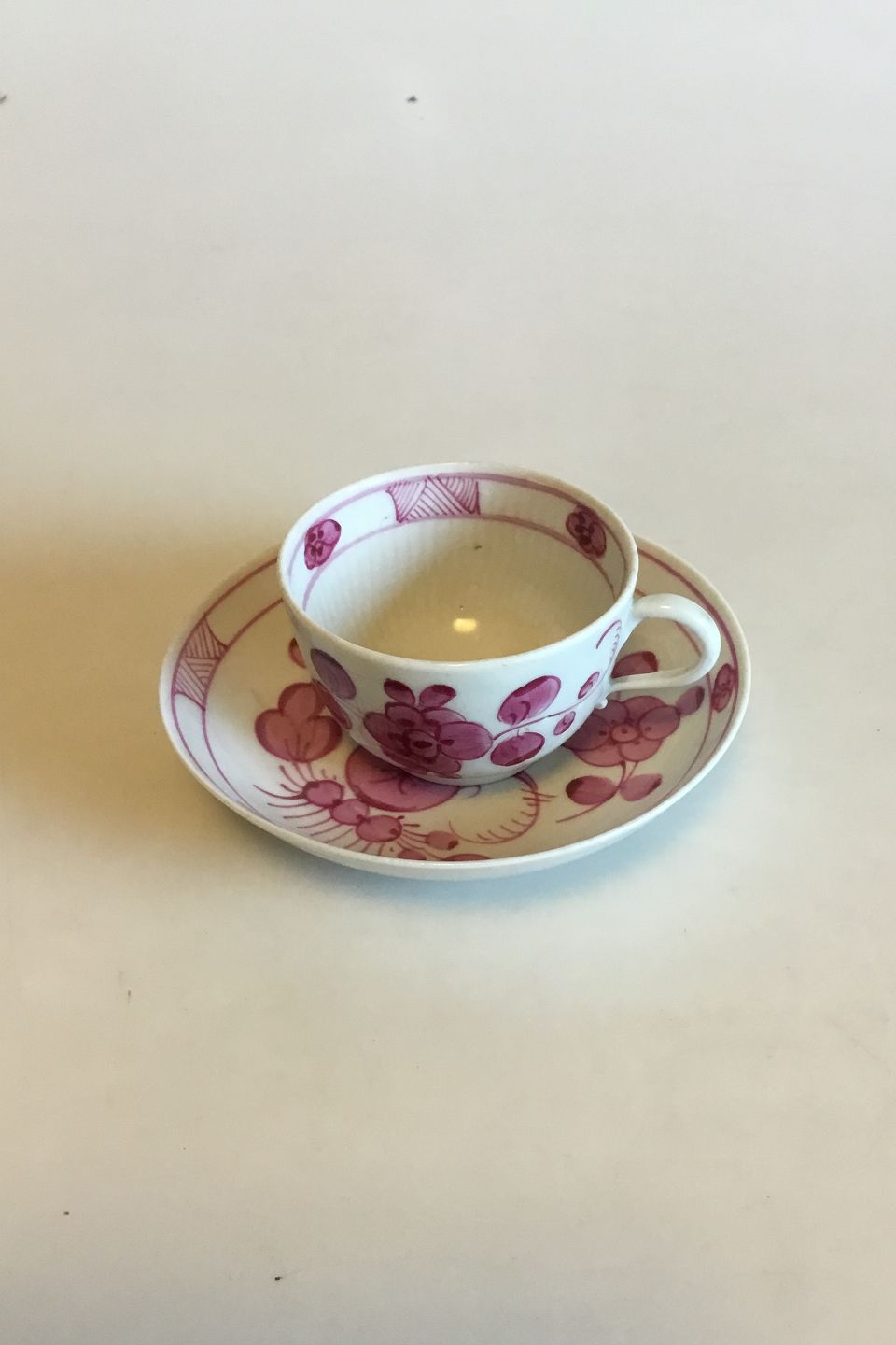 Tettau G. C. Greiner Thekop med rød dekoration. Måler kop: 4,6 cm x 7,5 cm dia. Underkop: ca. 13 cm dia. Fra efter 1794