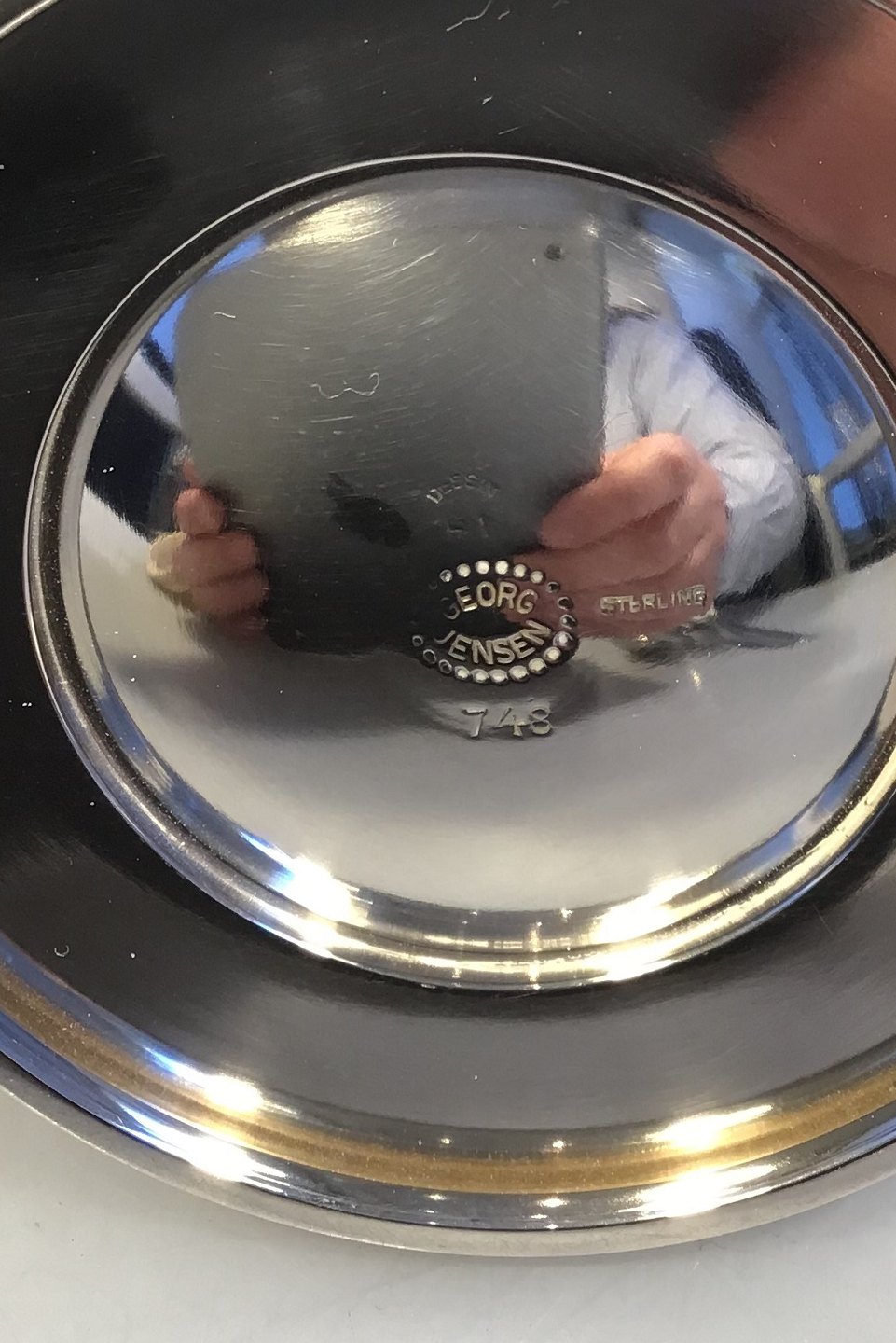 Georg Jensen Sterling Sølv Pyramide Lysestage No 748 Design Harald Nielsen H 6 cm Diam 8.5 cm Vægt 96 gr