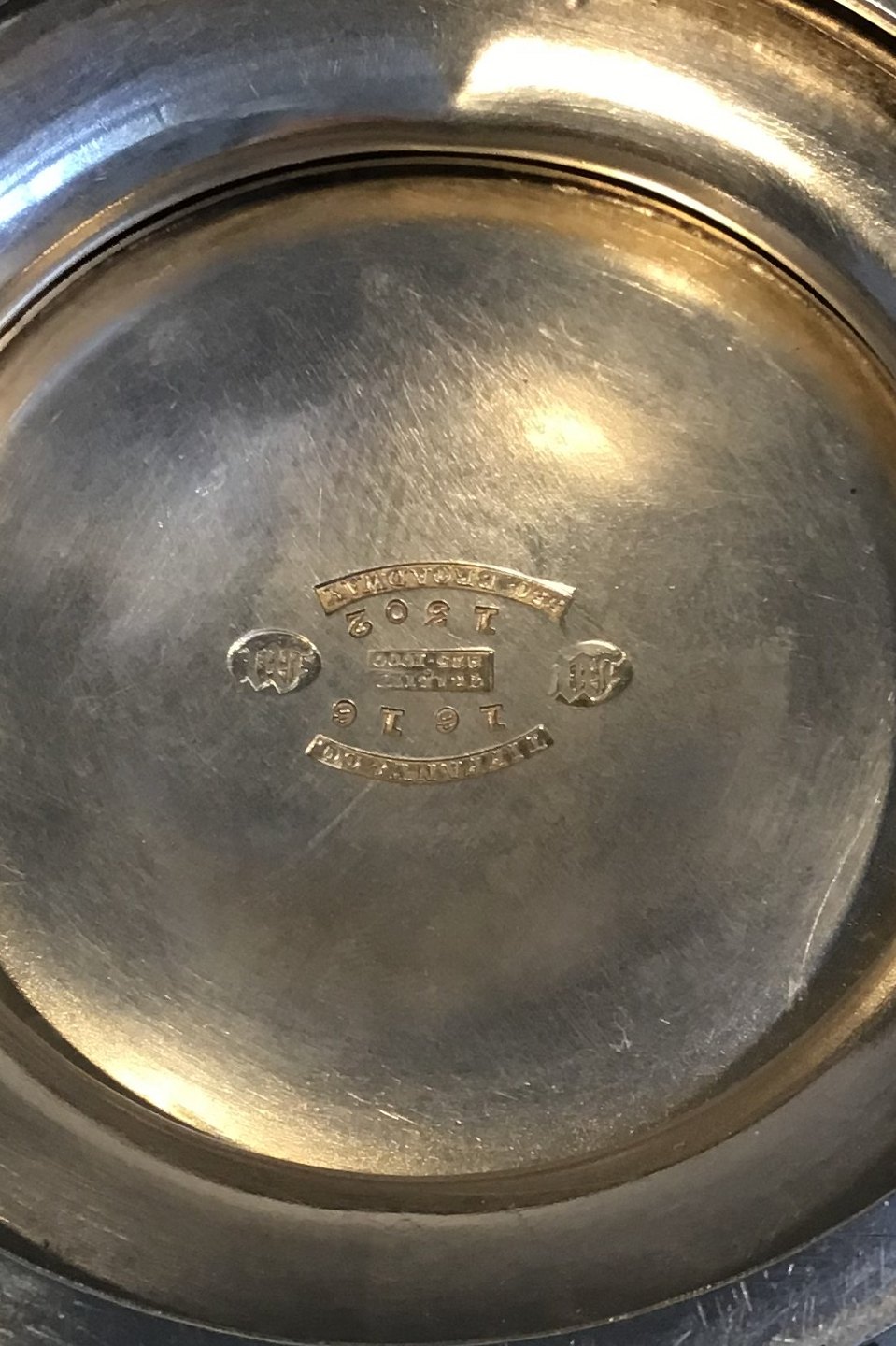 Tiffany Sterling Silver Caviar Dish Leaf engravings, grip shaped as putto. Master J.C. Moore & Son, No 1616 and 1302. Tiffany & Co. H. 16 cm/6.29" Diam. 17,5 cm/6.88" Weight 833 gr./29.38 oz.