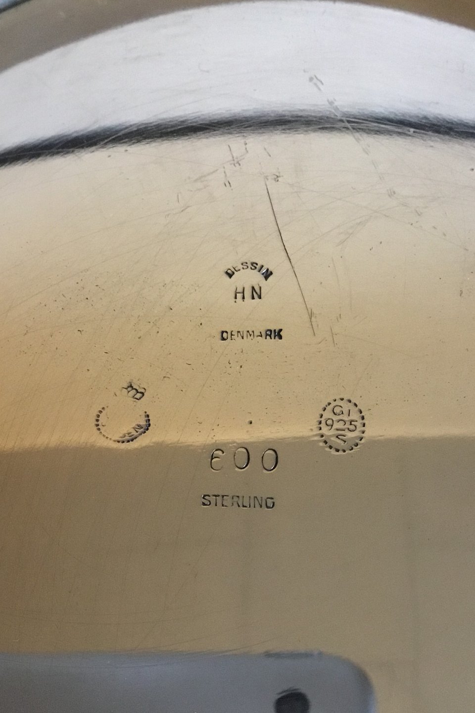 Georg Jensen Sterling Sølv Pyramide Rund Bakke No 600. Designet af Harald Nielsen. Måler 26,2 cm dia. Vejer 712 gram