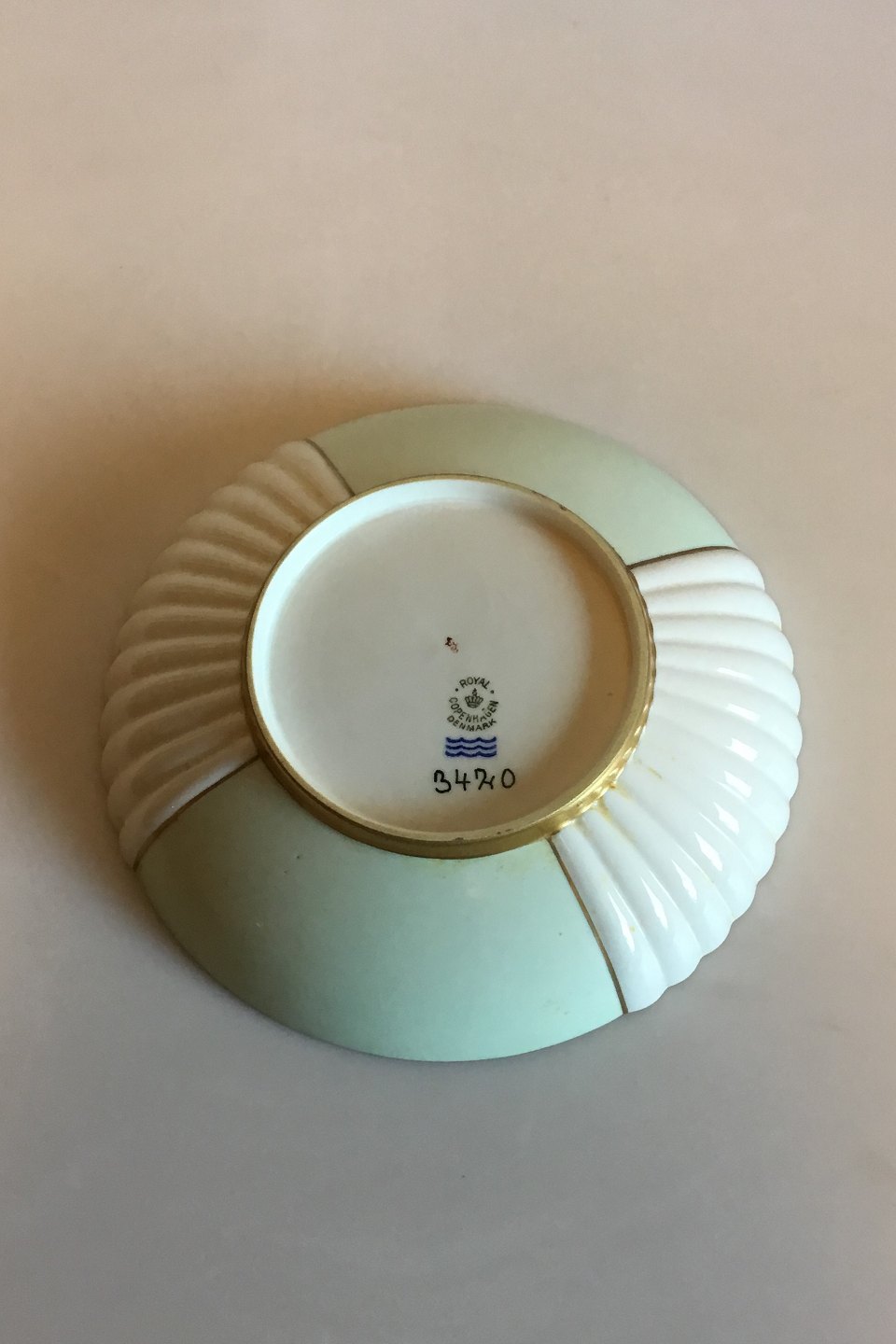 Royal Copenhagen Stel med grøn dekoration med guld på form 507(Herregaard) Skål No 3420. Måler 20,8 cm dia. Stempel fra Royal Copenhagen