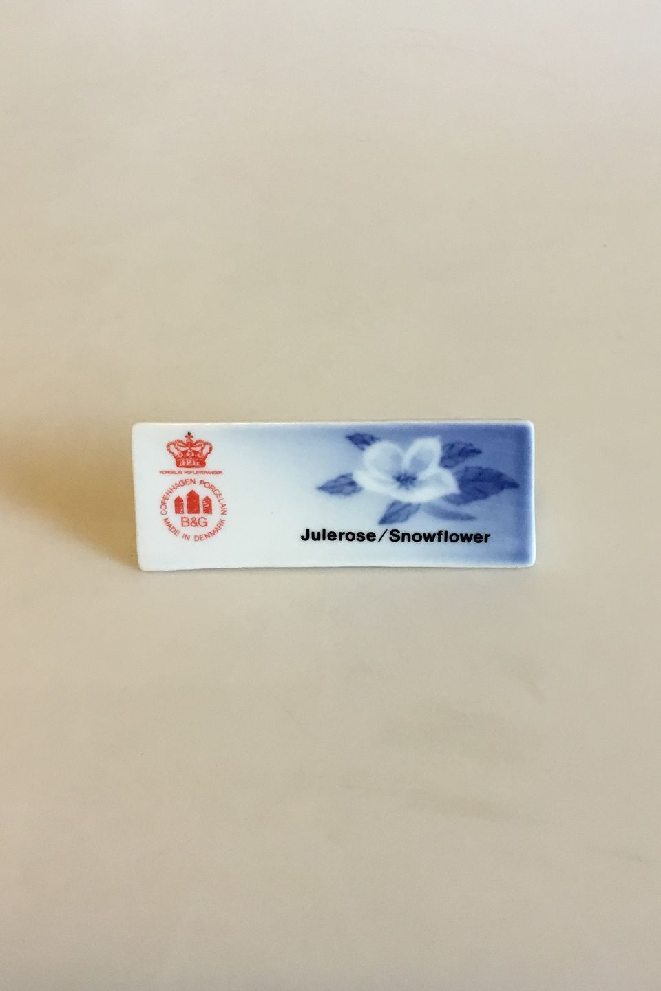 Bing & Grøndahl Forhandler Reklame Skilt "Julerose/Snowflower". Måler 9,6 cm x 3,7 cm.