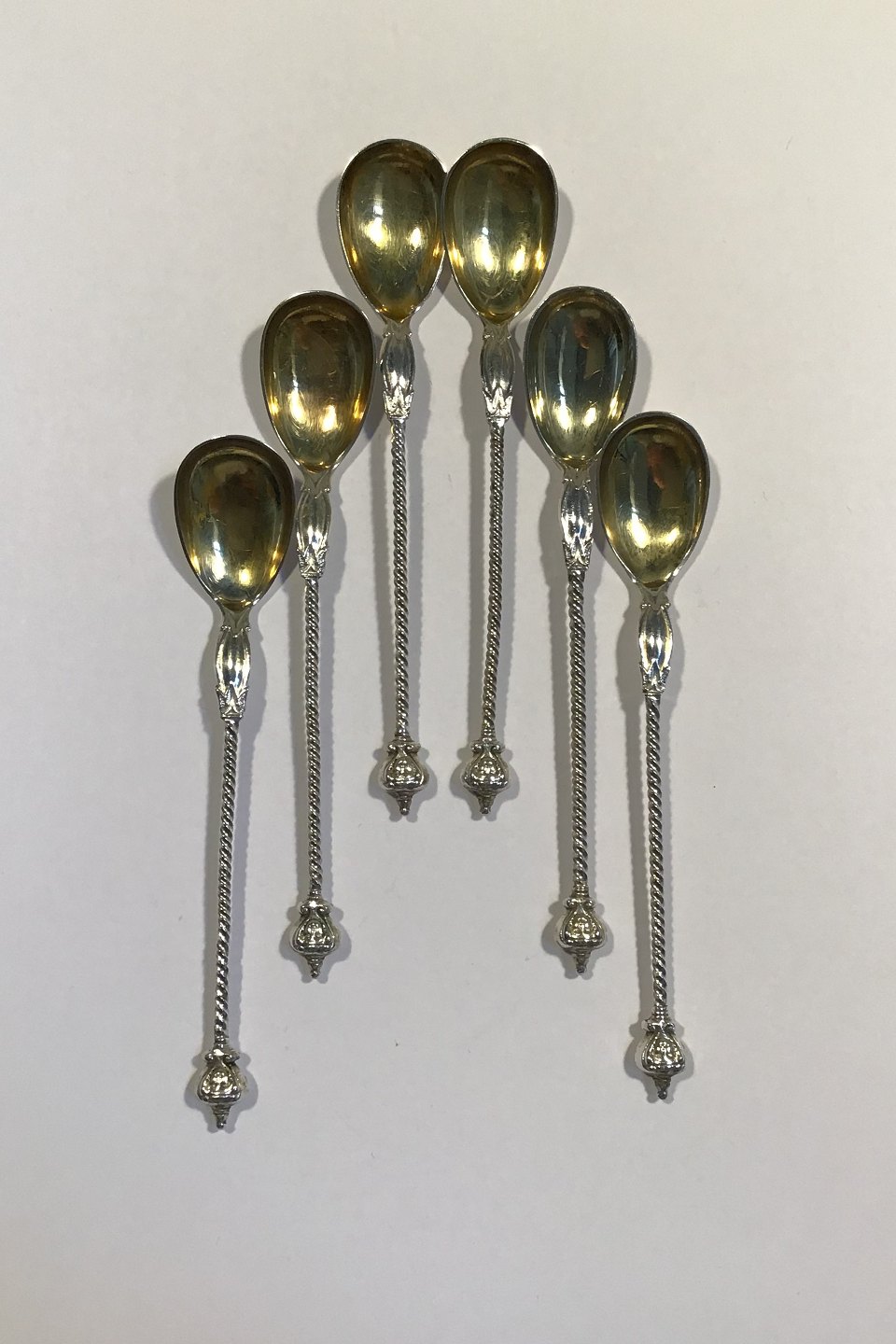 Silver Coffee Spoons Hallmarked by Danish Silversmith Gilded Bowl 12.2 cm/4.80"