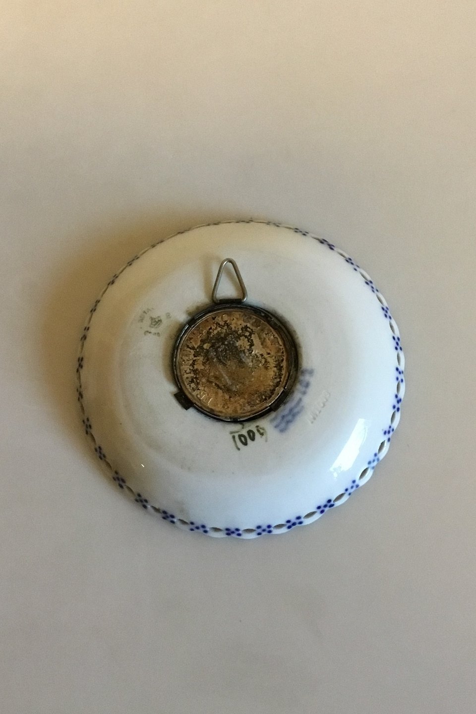 Royal Copenhagen Musselmalet Helblonde Lysmanchet med monteret med 2-Kronemønt med Prinsesse Margrethe, 1958. No 1009. Måler 9,4 cm