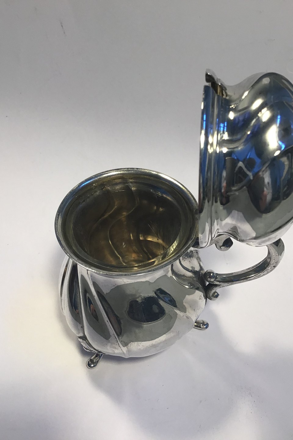 Skævknækket Sølv Sennepskop med låg og glasindsats H 11cm Samlet vægt 146.7 Indsats med lille hak