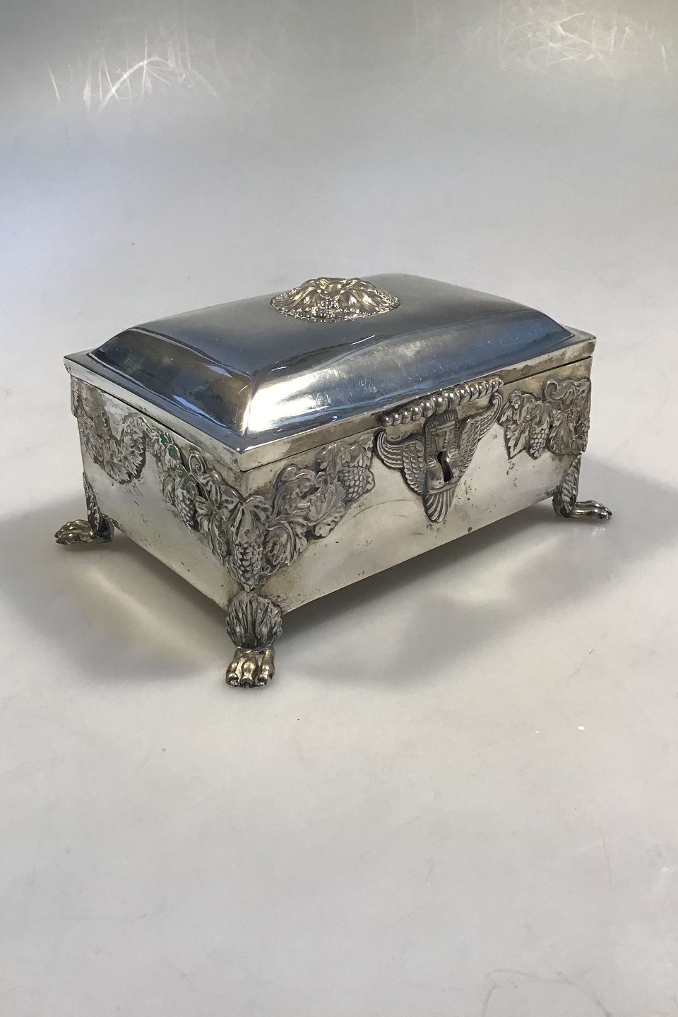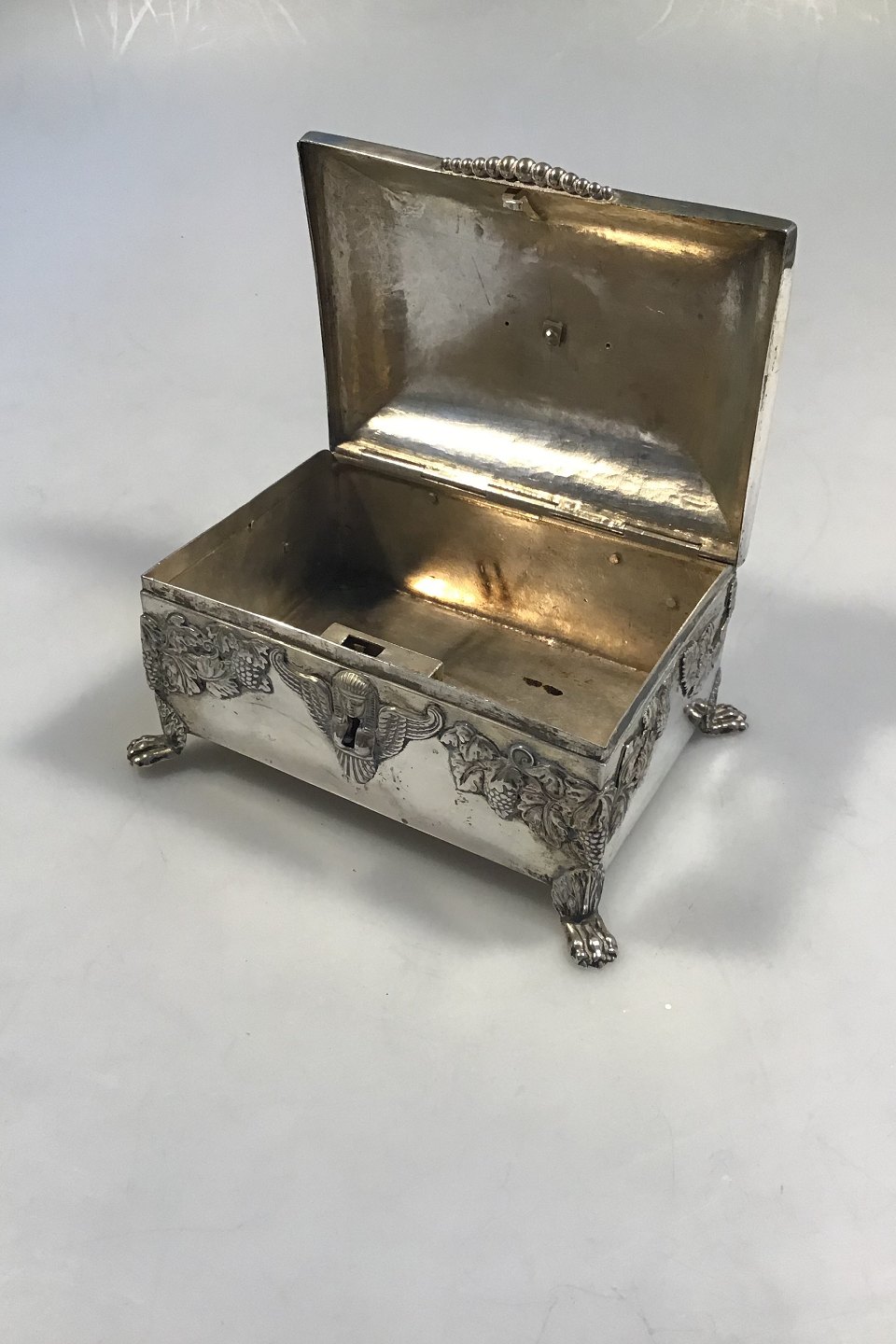 Silver Jewelrybox Decoration: Egyptian Goddess Maat/Isis Vines and floral rosette Unknown Hallmark L16.2 cm/6.37" x W 12 cm/4.72" x H 8.5 cm/3.34" Weight 468 gr/16.5 oz NB No key