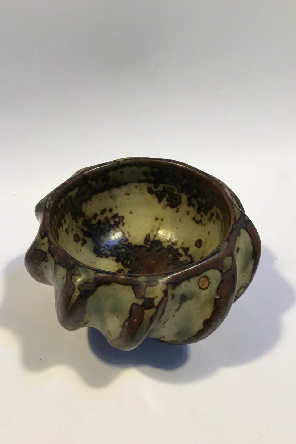 Royal Copenhagen Axel Salto Stentøjskål No 20681. Sungglasur, modelleret i spirende stil H. 5.5 cm Diam 10 cm