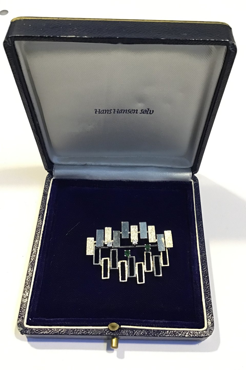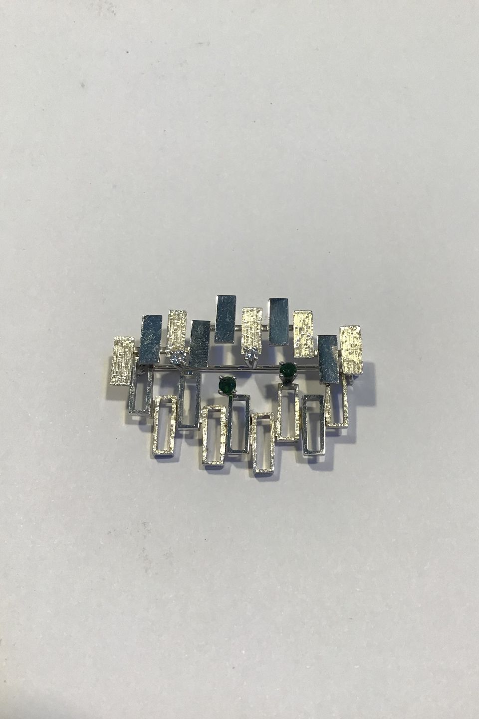 Hans Hansen 18 kt Hvidguld Broche m/ Turmalin og Diamant Måler 3.8 cm x 2.8 cm Vægt 9.7 gr