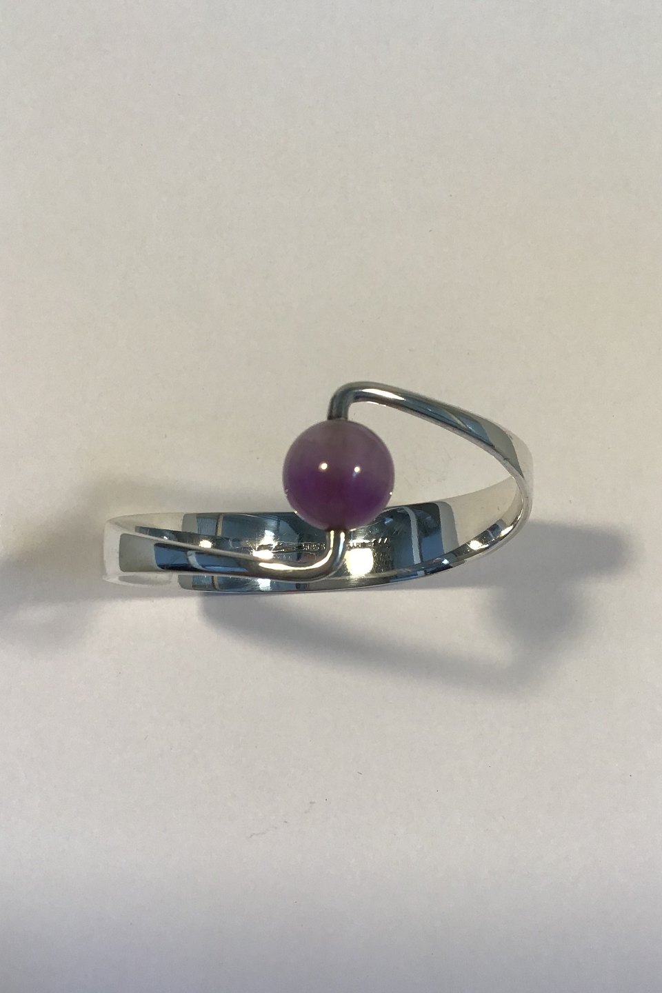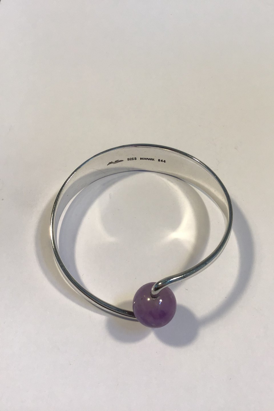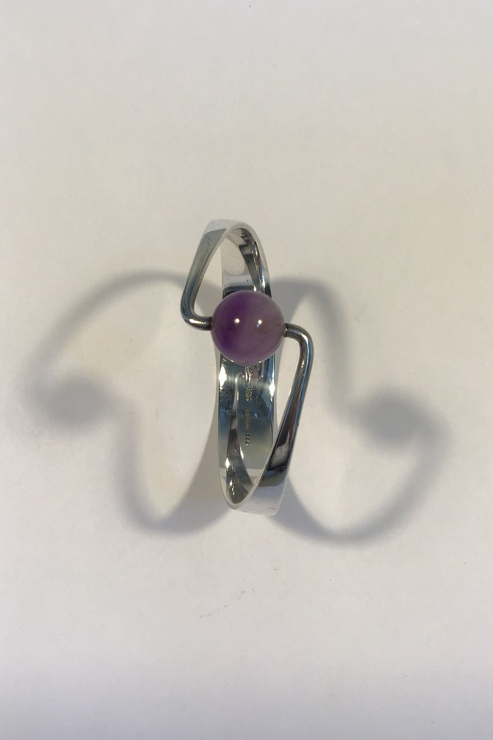 Hans Hansen Sterling Sølv Armring No 244 med Ametyst Måler 6.2 cm invendigt Vægt 39 gr