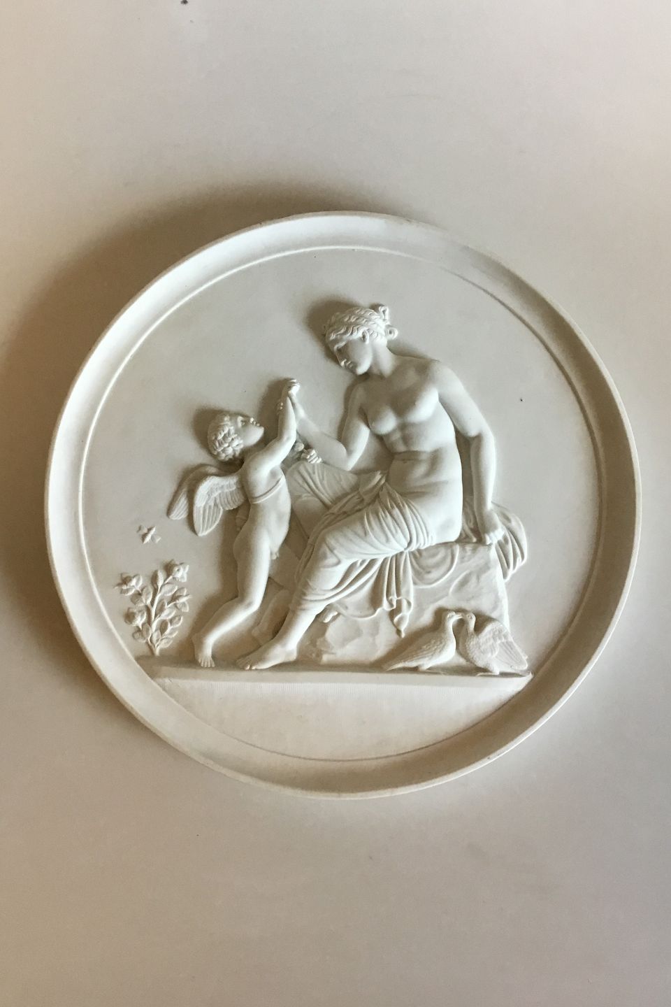 Royal Copenhagen Bisque Plate "Amor complains to Venus for a sting of a Bee" No 84. Copy by O.H.B. Olrik from 1849 after Thorvaldsens original from Rome 1809. Measures 35.5 cm (13.97 inch)