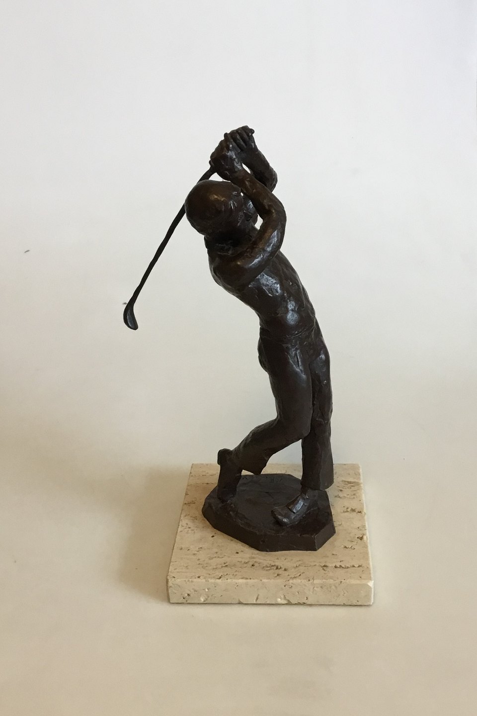 Royal Copenhagen Bronzesstatuette af Golfspiller. Designet af Sterett-Gittings Kelsey i 1977. Måler 26 cm