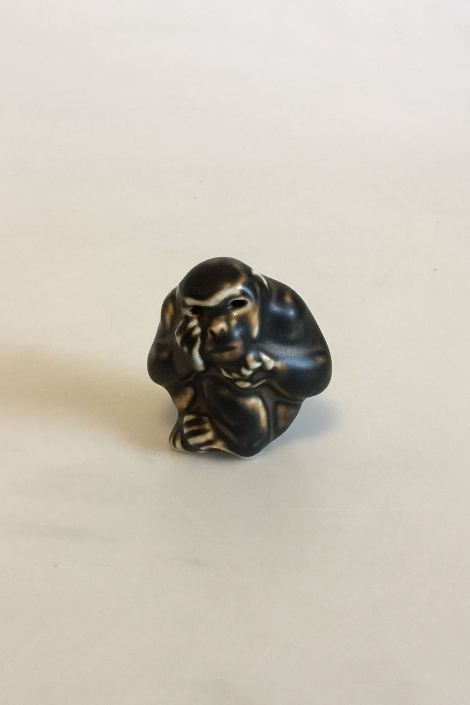 Royal Copenhagen Stoneware Figurine of Monkey No 20218. Designed by Knud Kyhn. Measures 5 cm / 1 31/32 in.