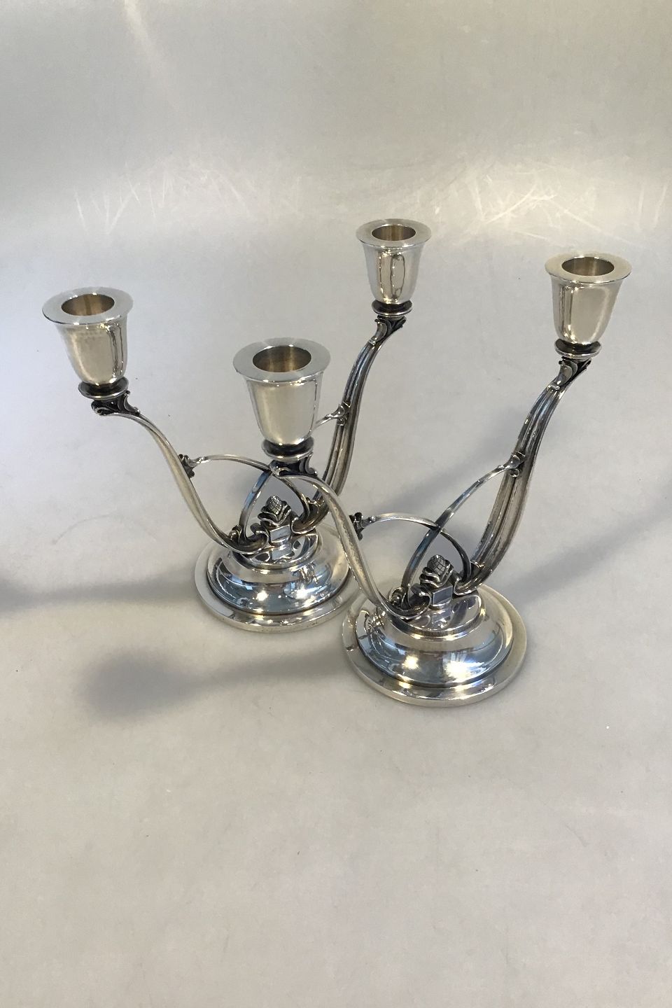 Georg Jensen Sterling Sølv 2-armet Lysestager. Konge No 619(2)