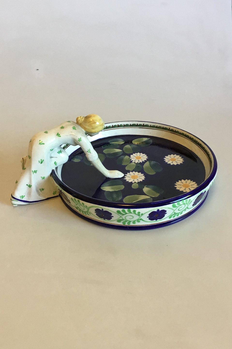 Aluminia Faience Figurine of Girl picking Waterlillies. Designed by Harald Slott-Moller in 1905 No 525/397