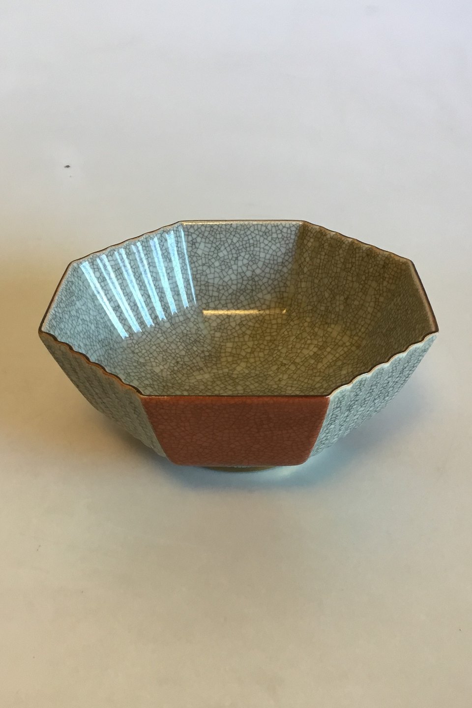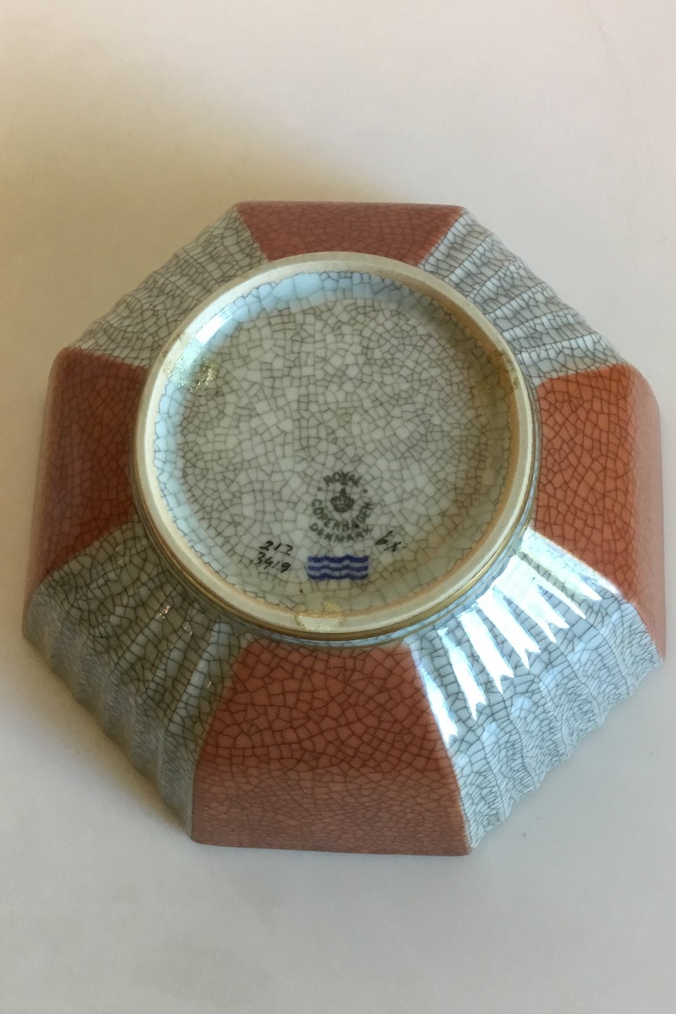 Royal Copenhagen Ottekantet Krakeléskål No 212/3419. Måler 7,5 cm x 17,5 cm