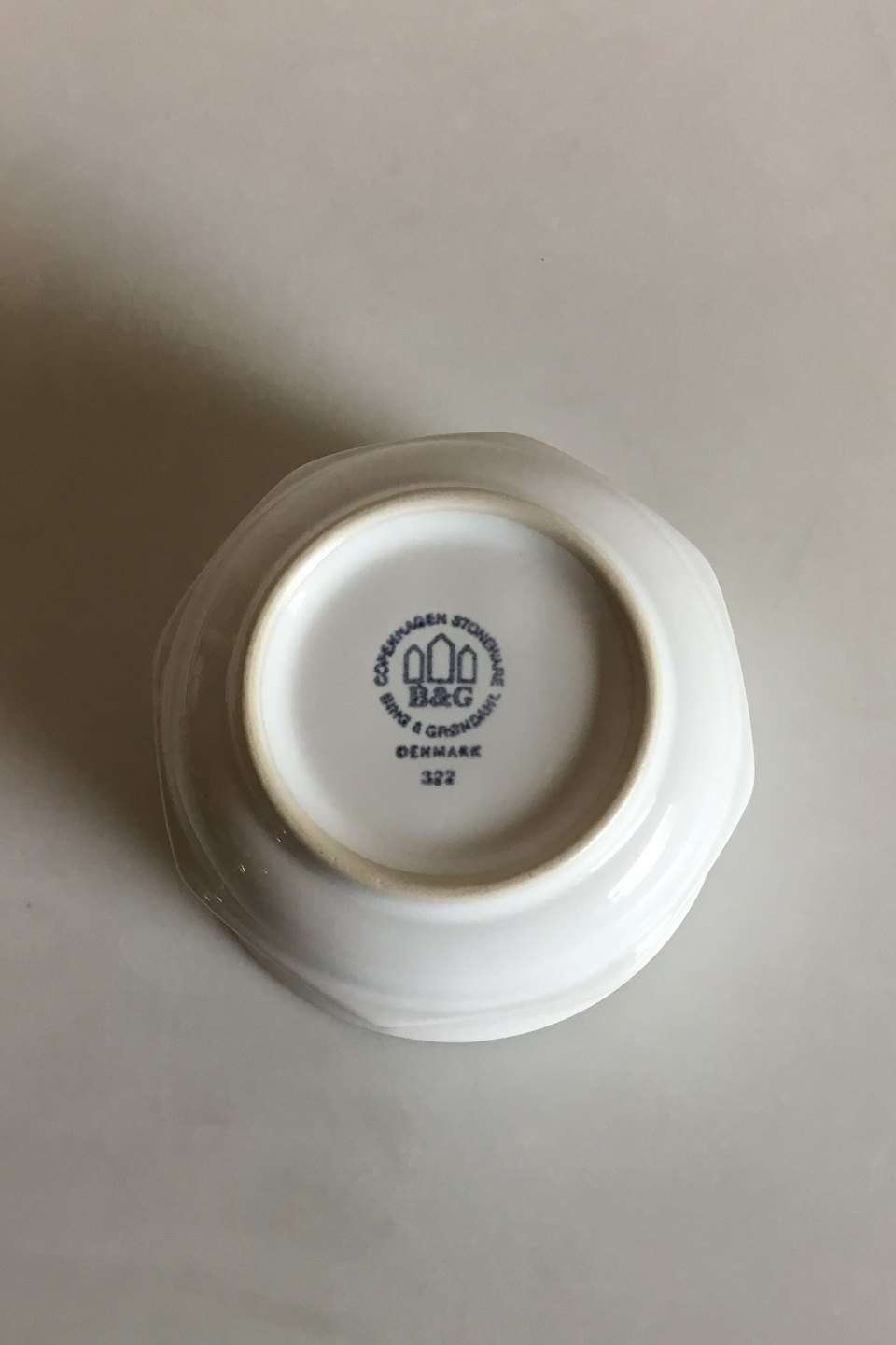 Bing & Grøndahl Hvid Café Skål No 322. Måler 7,5 cm x 11,5 cm dia.,