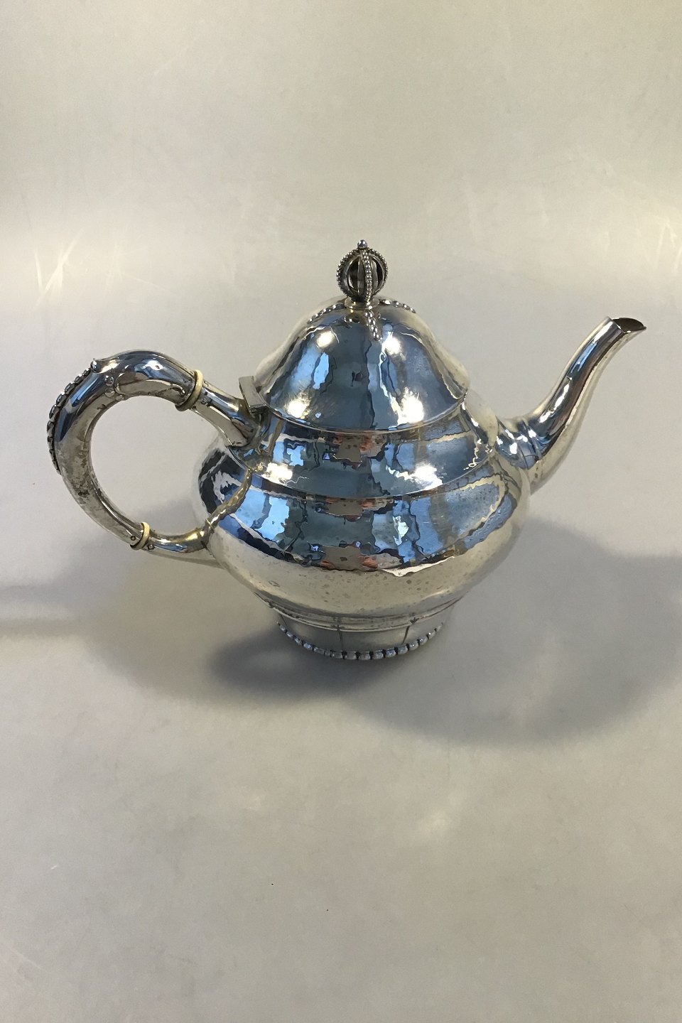 Danish Silver Tea Pot (1925) Pearl border and finial shaped as crown H 17.5 cm (6.88 in)Weight 427 gr /13.74 oz