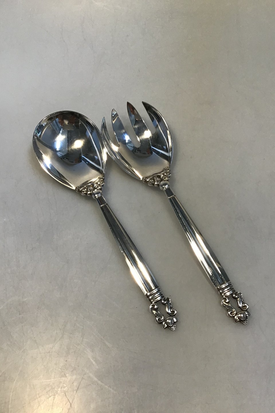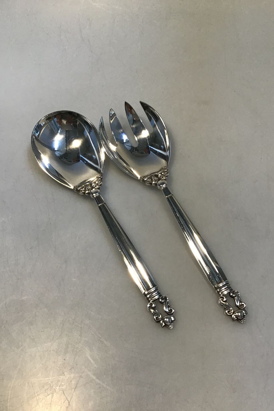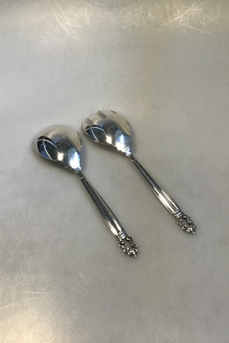 Georg Jensen Sterling Sølv Konge Serveringssæt Medium, No 113+114 Måler Ske 22.8 cm Gaffel 22.6 cm
