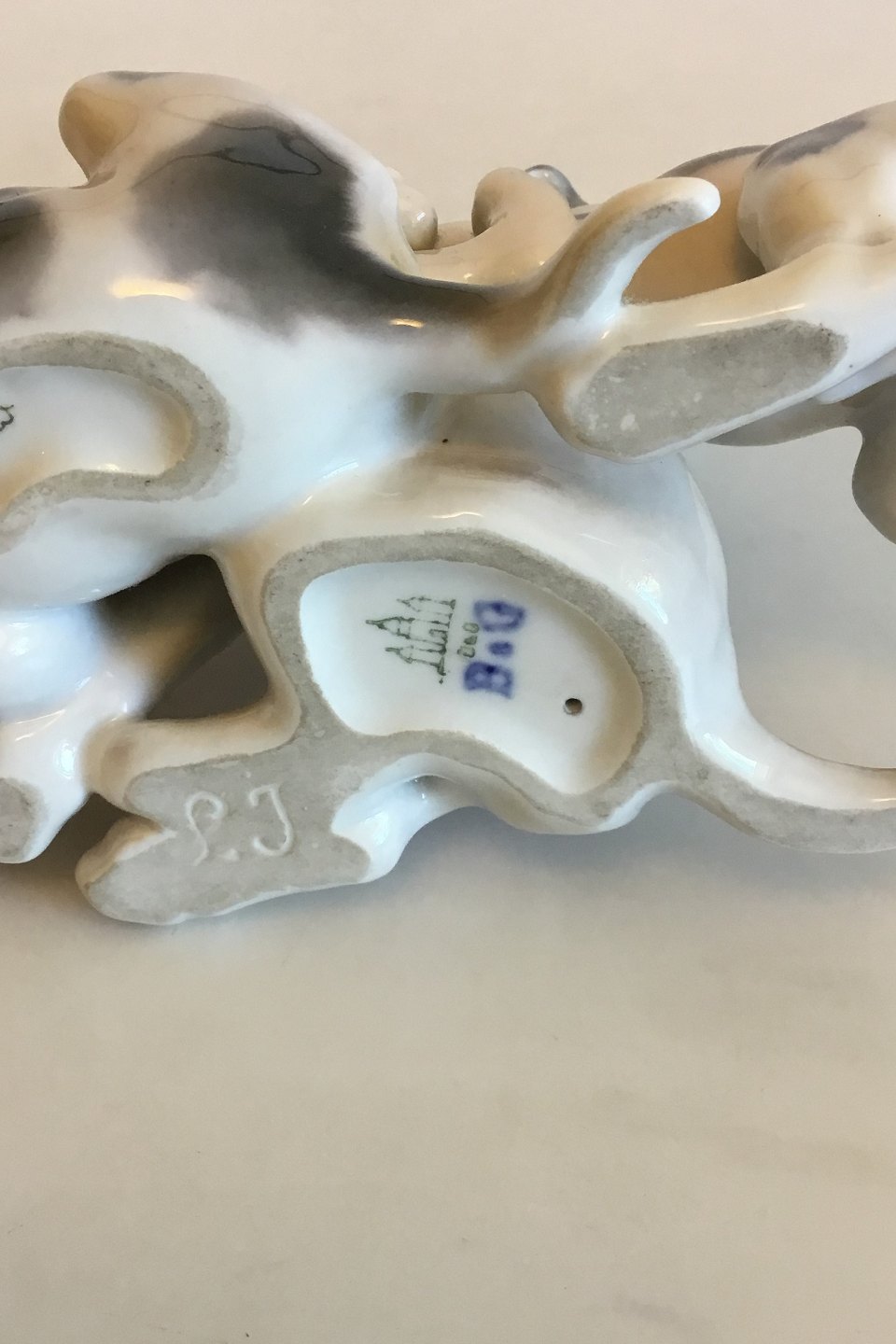 Bing & Grondahl Figurine of Three Pointer Puppies Playing No 1815. Signed L.J. (Lauritz Jensen). Measures 19.5 cm / 7 43/64 in. The Tale is glued on