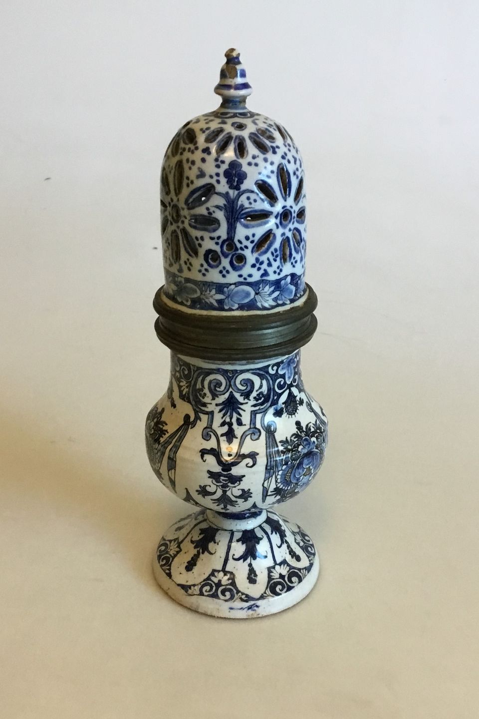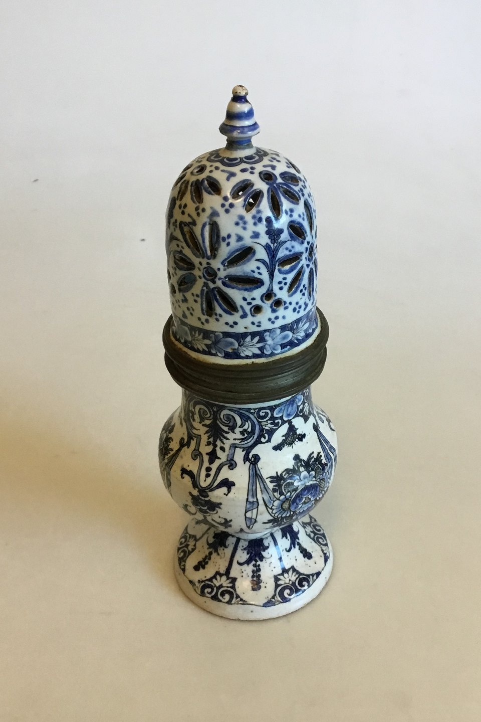 Faience Shaker with Blue decoration. Measures 23.5 cm / 9 1/4 in. Small Chiips and repair on top