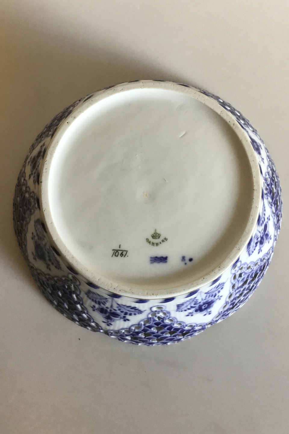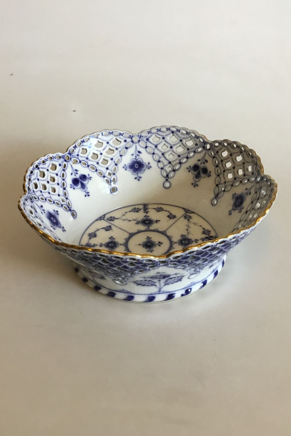 Royal Copenhagen Musselmalet Helblonde med Guld Rund Frugtkurv No 1/1061. Måler 9 cm x 23 cm dia.
