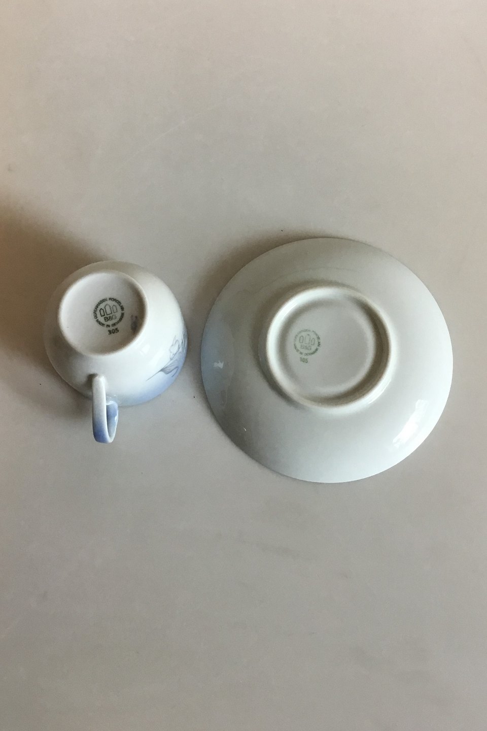 Bing & Grondahl Lily of the Valley Coffee Cup and Saucer No 305. Measures Cup: 6 cm / 2 23/64 in. x 7 cm / 2 3/4 in. dia. Saucer: 13.7 cm / 5 25/64 in.