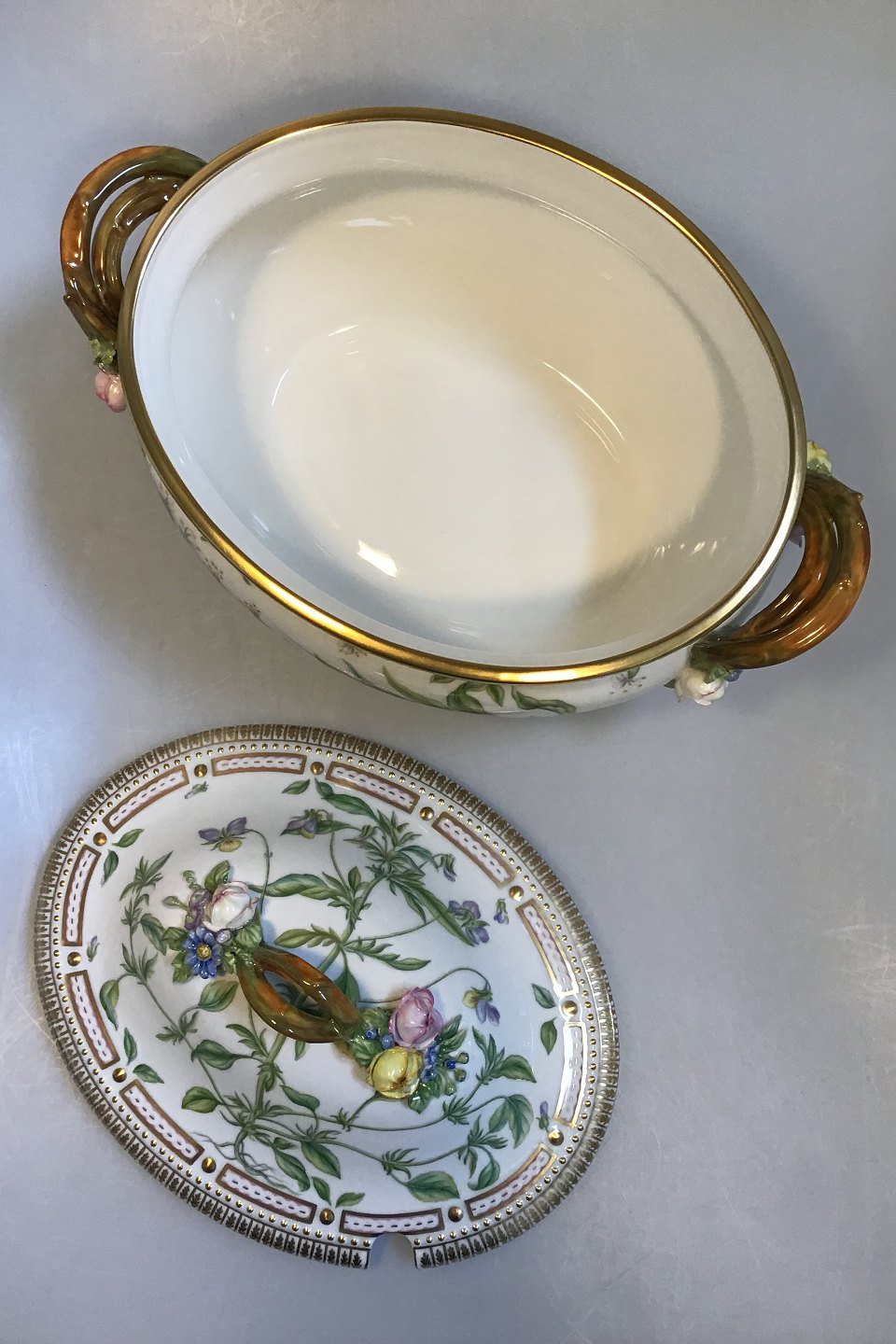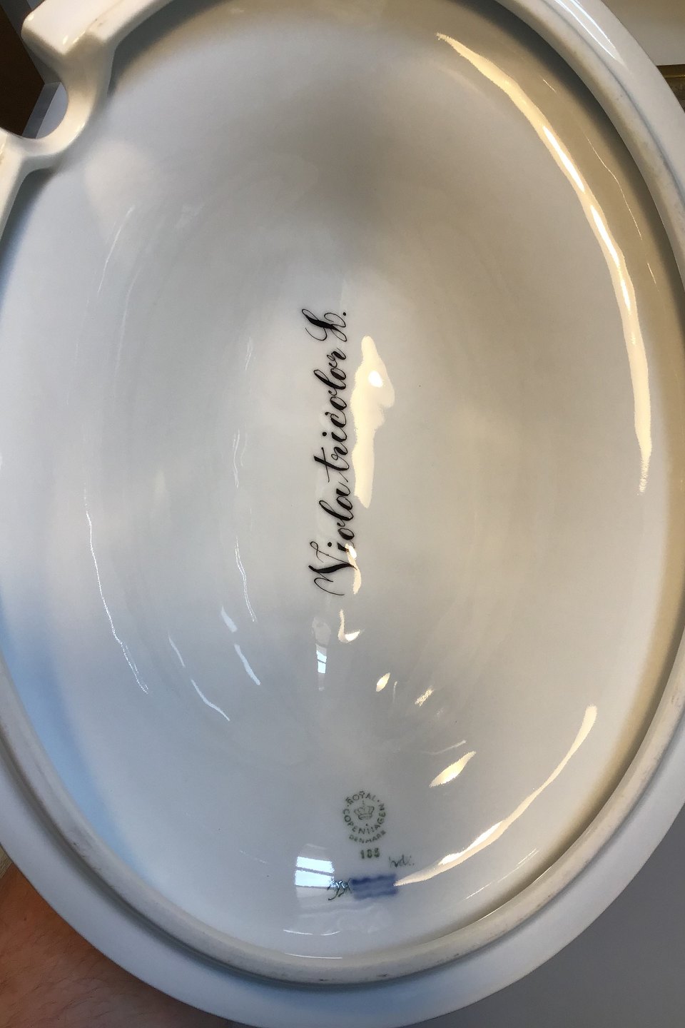 Royal Copenhagen Flora Danica Tureen No 186(185) No 3559 Measures 34 cm x 23 cm x 23 cm(13.38 in x 9.05 in x 9.05 in) Latin names Orchis maculata L, Silene viscosa Pers and Viola tricolor L