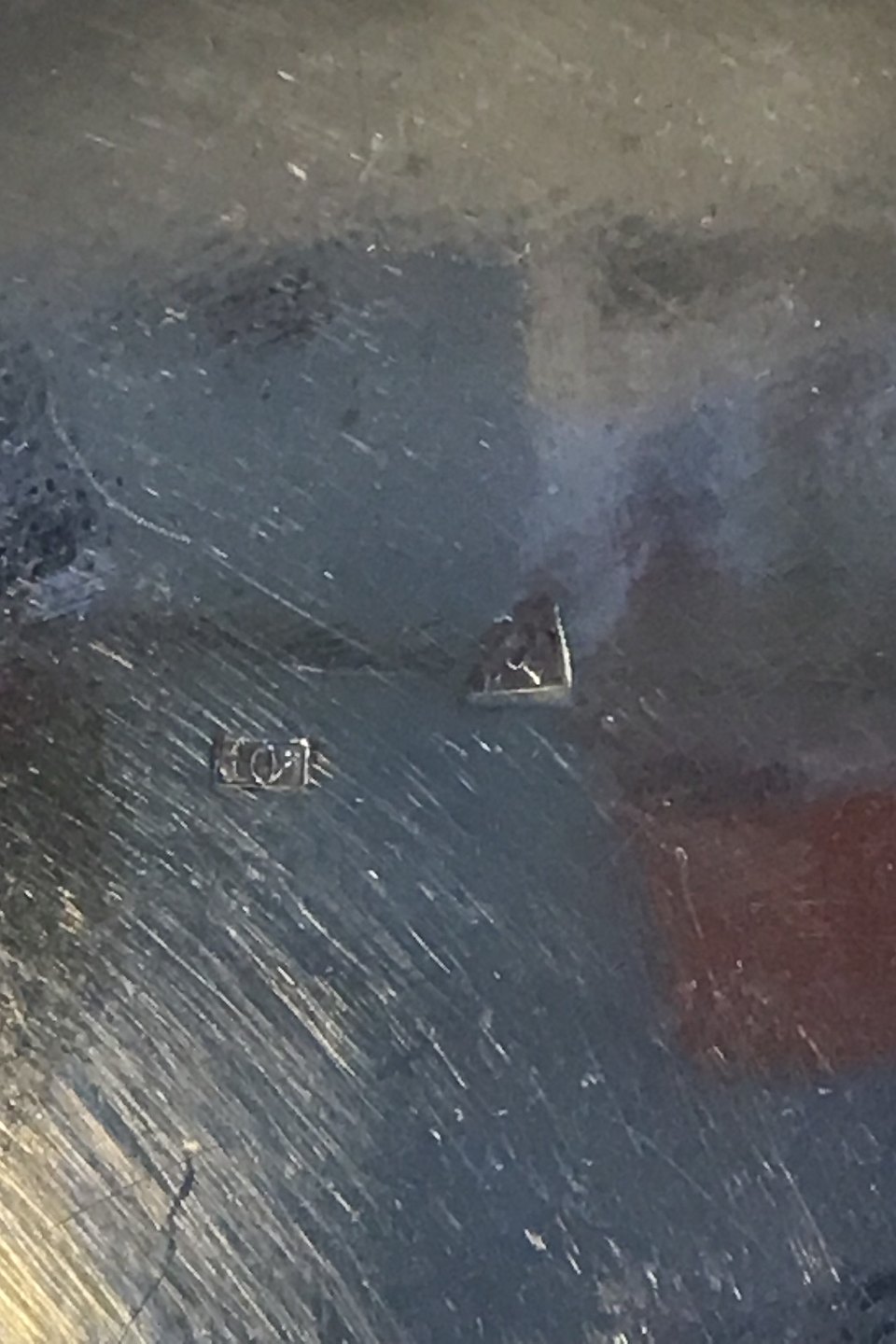 Sølv Bakke Flaskebakke Diam15 cm Vægt 127.1 gr Stemplet "40" og utydeligt Sølvstempel