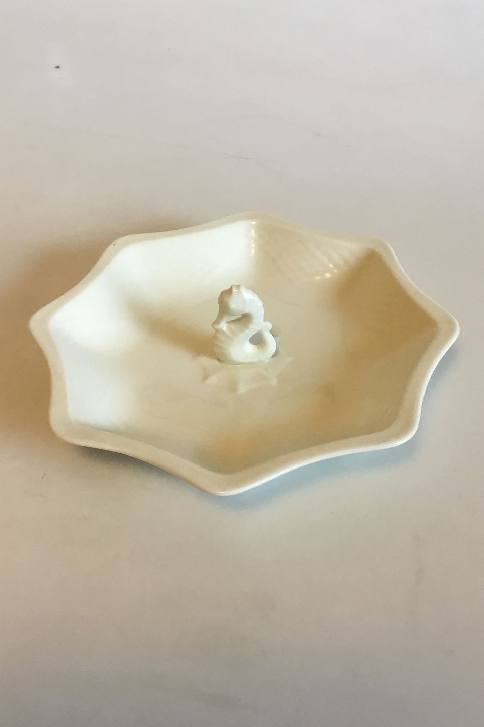 Bing & Grøndahl Elegance, Creme Ottekantet fad med søhest No 217. Måler 21 cm