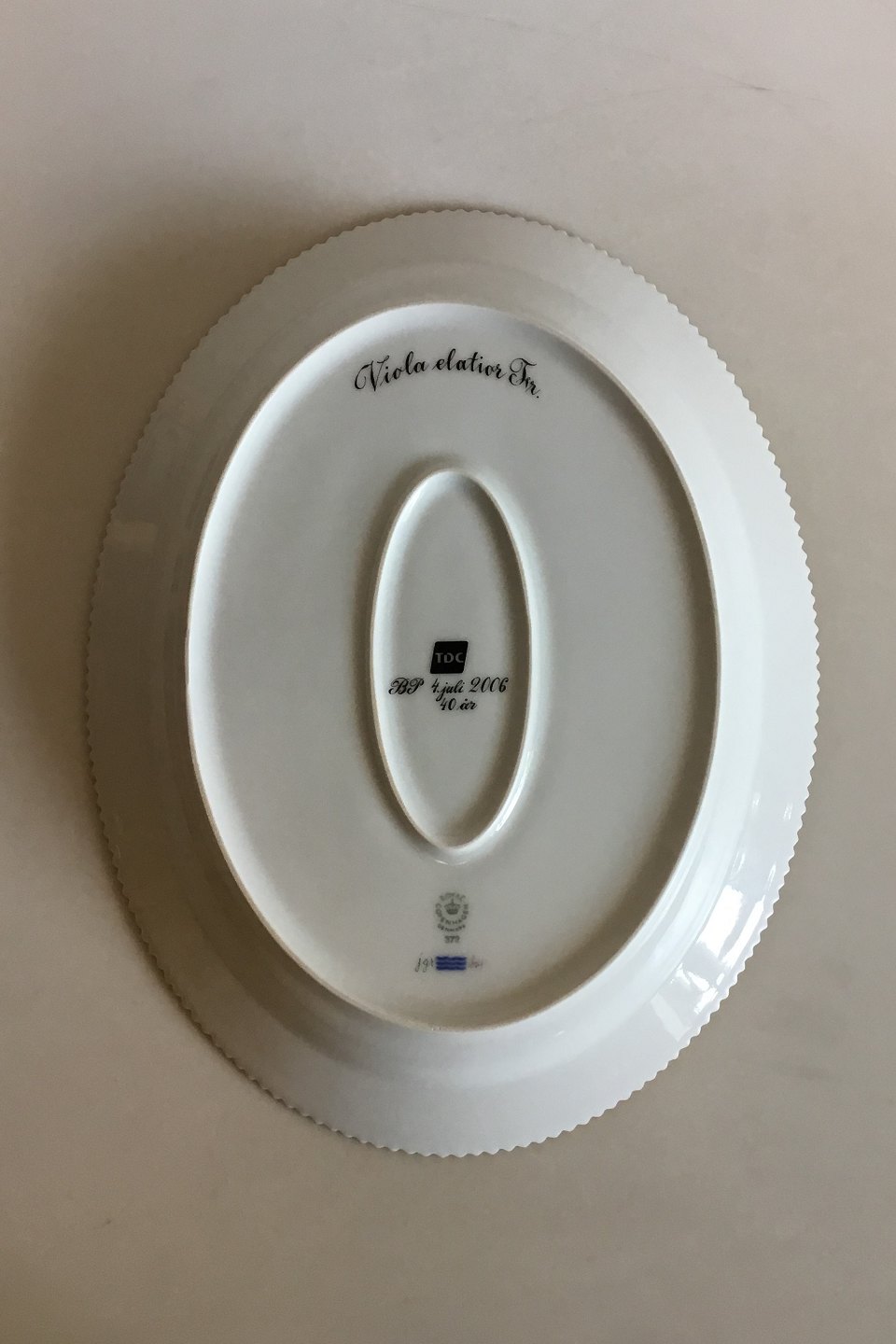Royal Copenhagen Flora Danica Ovalt fad No 372. Måler 36 cm x 28 cm. Latinsk tekst: Viola elatior Fr.