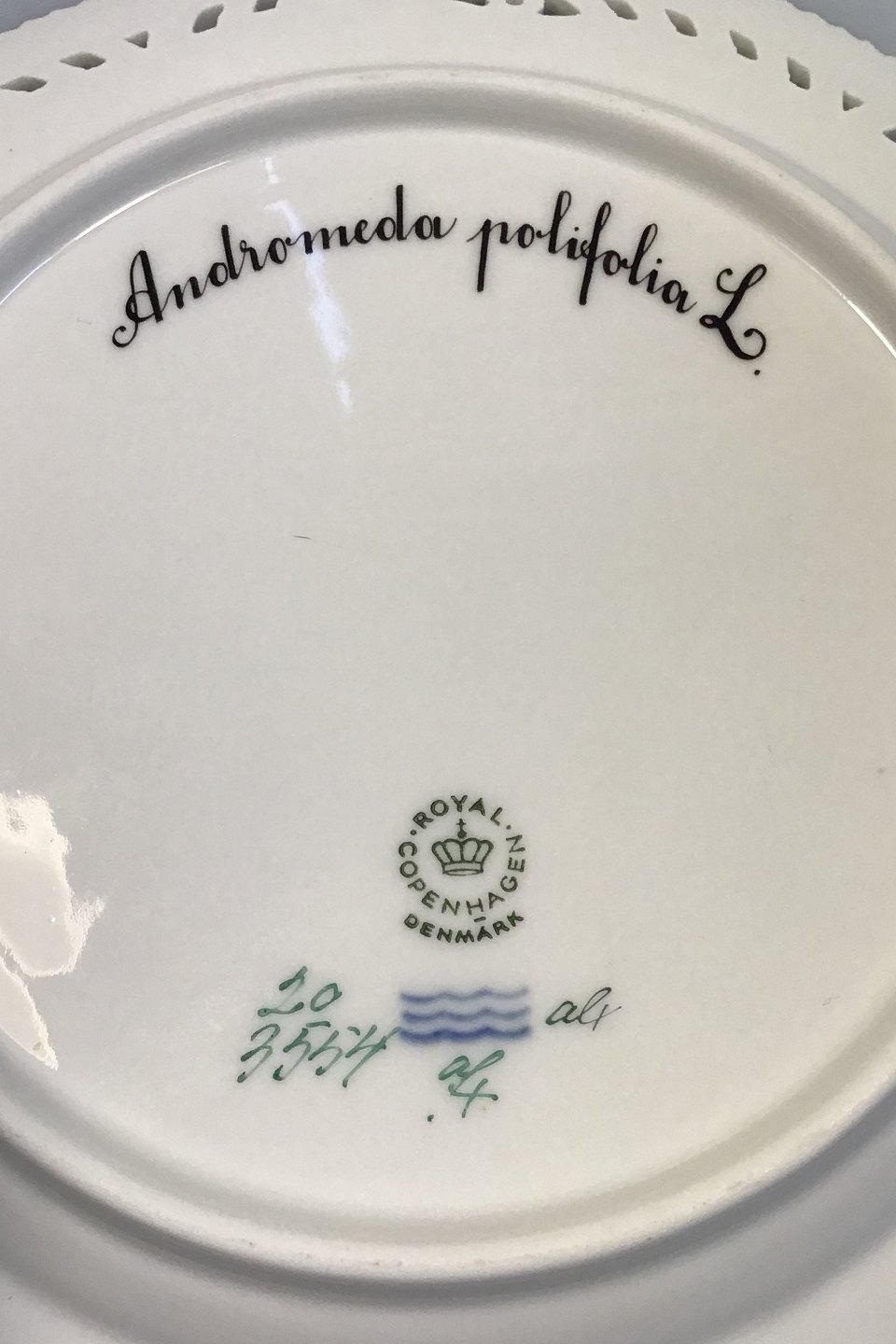 Royal Copenhagen Flora Danica Frokosttallerken No 20/3554 med gennembrudt kant.