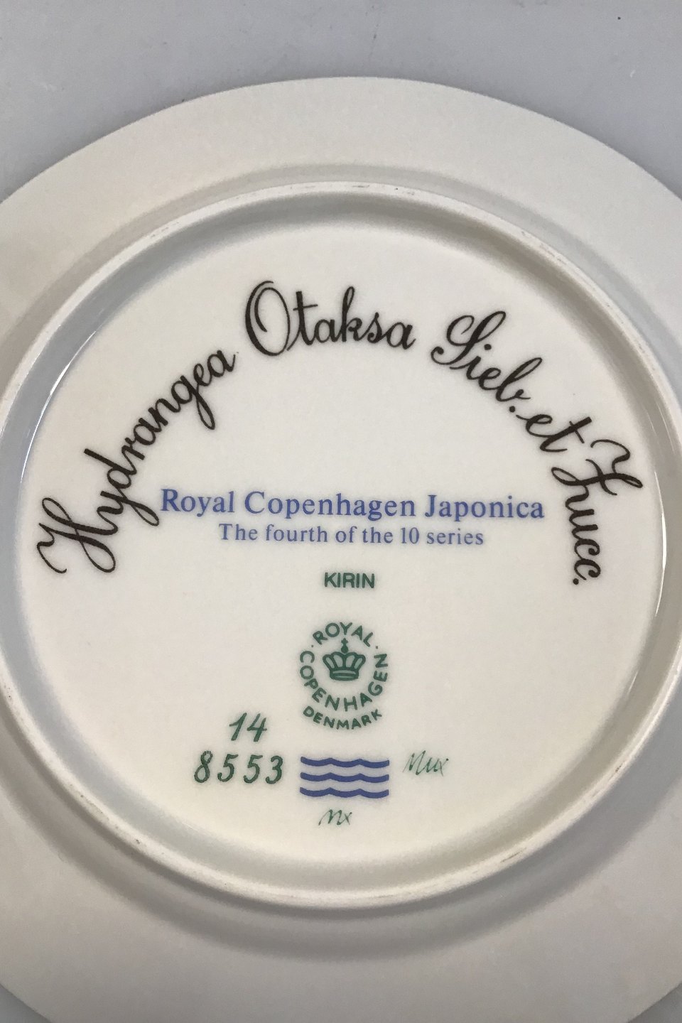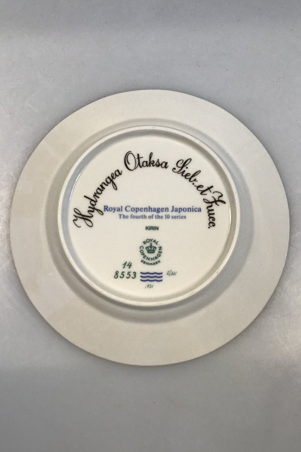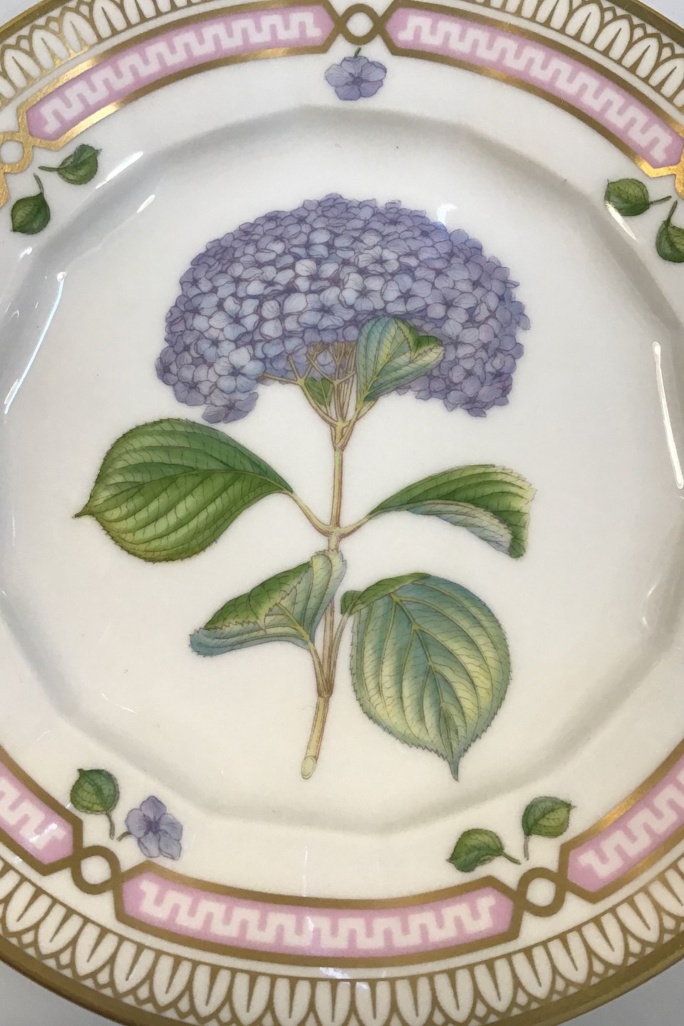 Royal Copenhagen Flora Danica "Japonica" Sidetallerken No 14/8553 Latinsk Navn "Hydrangea Otaksa Sieb et Zucc" Diam 15.8 cm No 4 af serie på 10