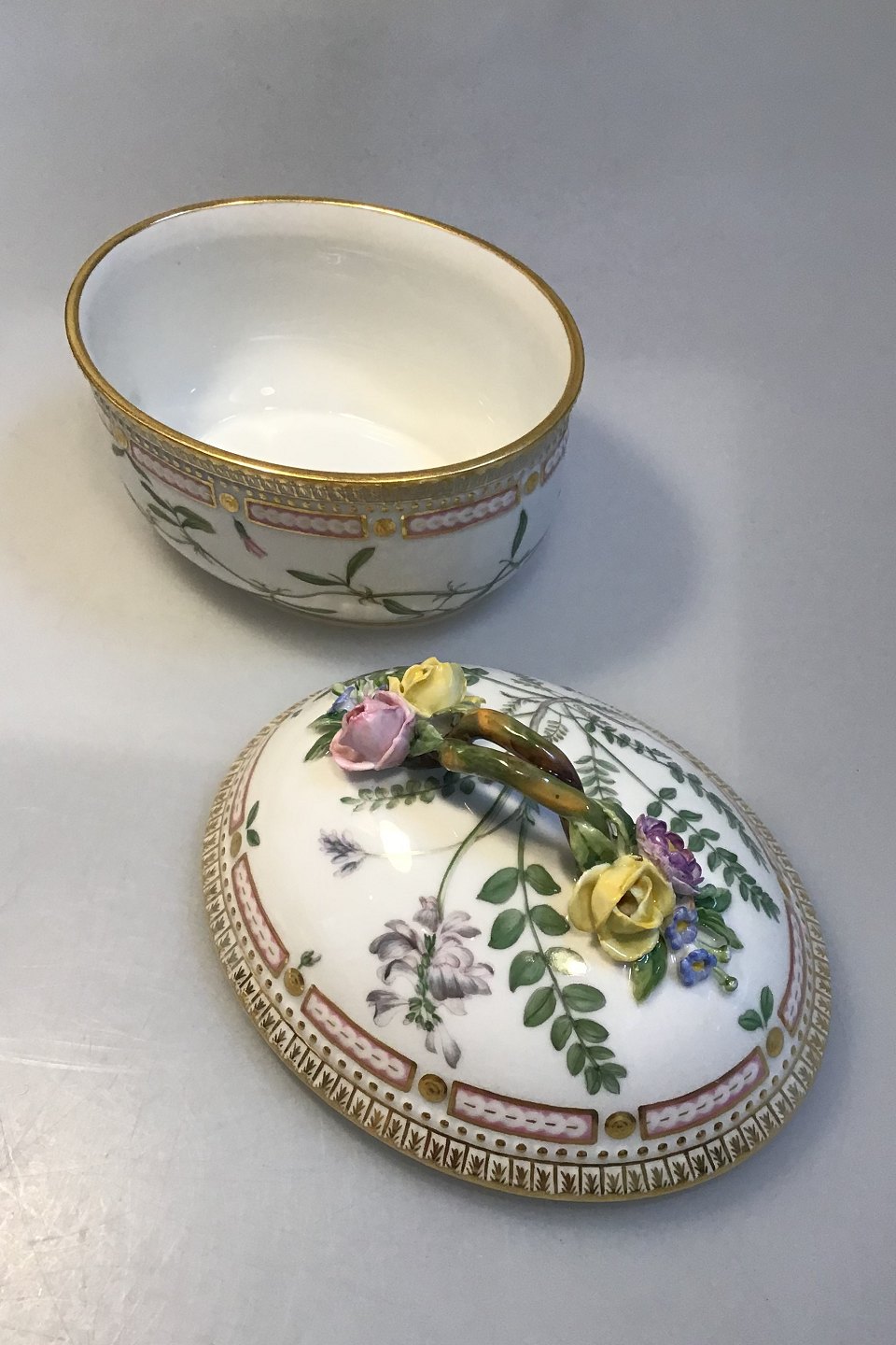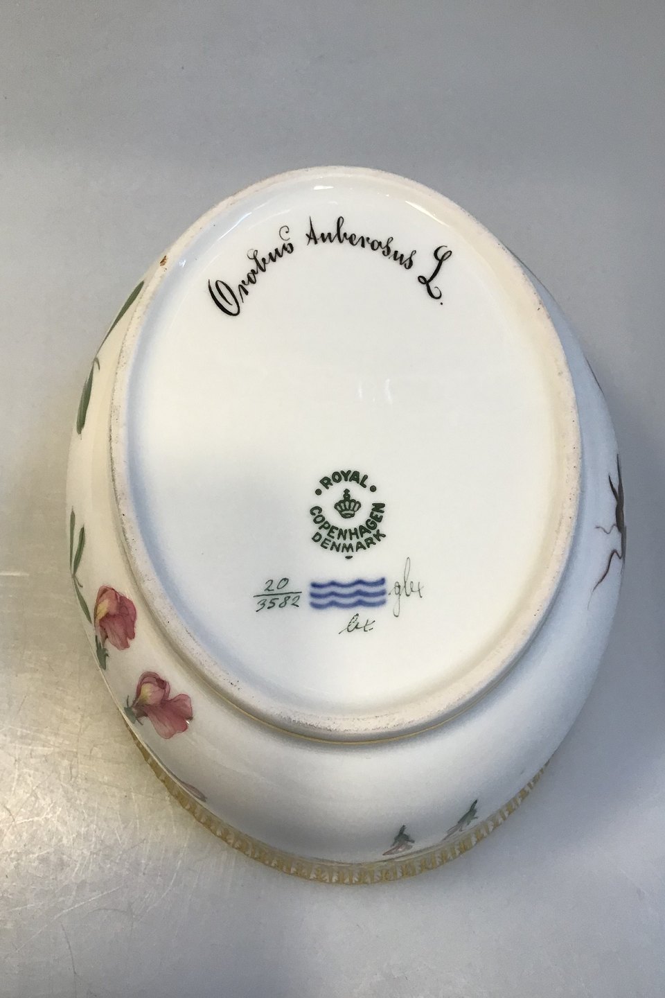 Royal Copenhagen Flora Danica Sukkerskål No 20/3582 Latinsk Navn: Orobus Auberosus L /Astragalus alpinus Måler 16 cm x 14 cm