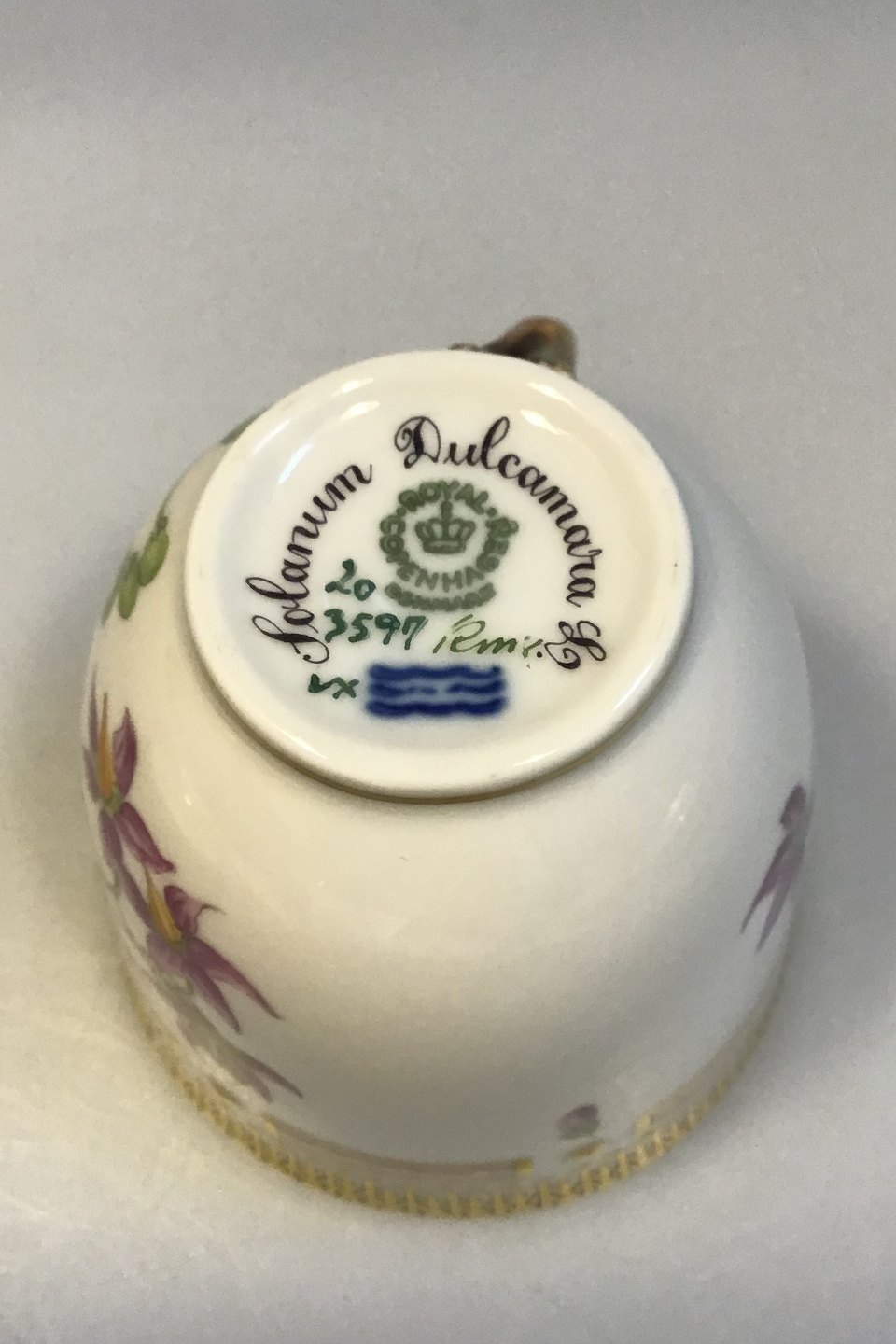 Royal Copenhagen Flora Danica Kaffekop og Underkop No 20/3597 Latinsk navn: Solanum Dulcamara L(Bittersød natskygge) Måler 7 cm x 7 cm