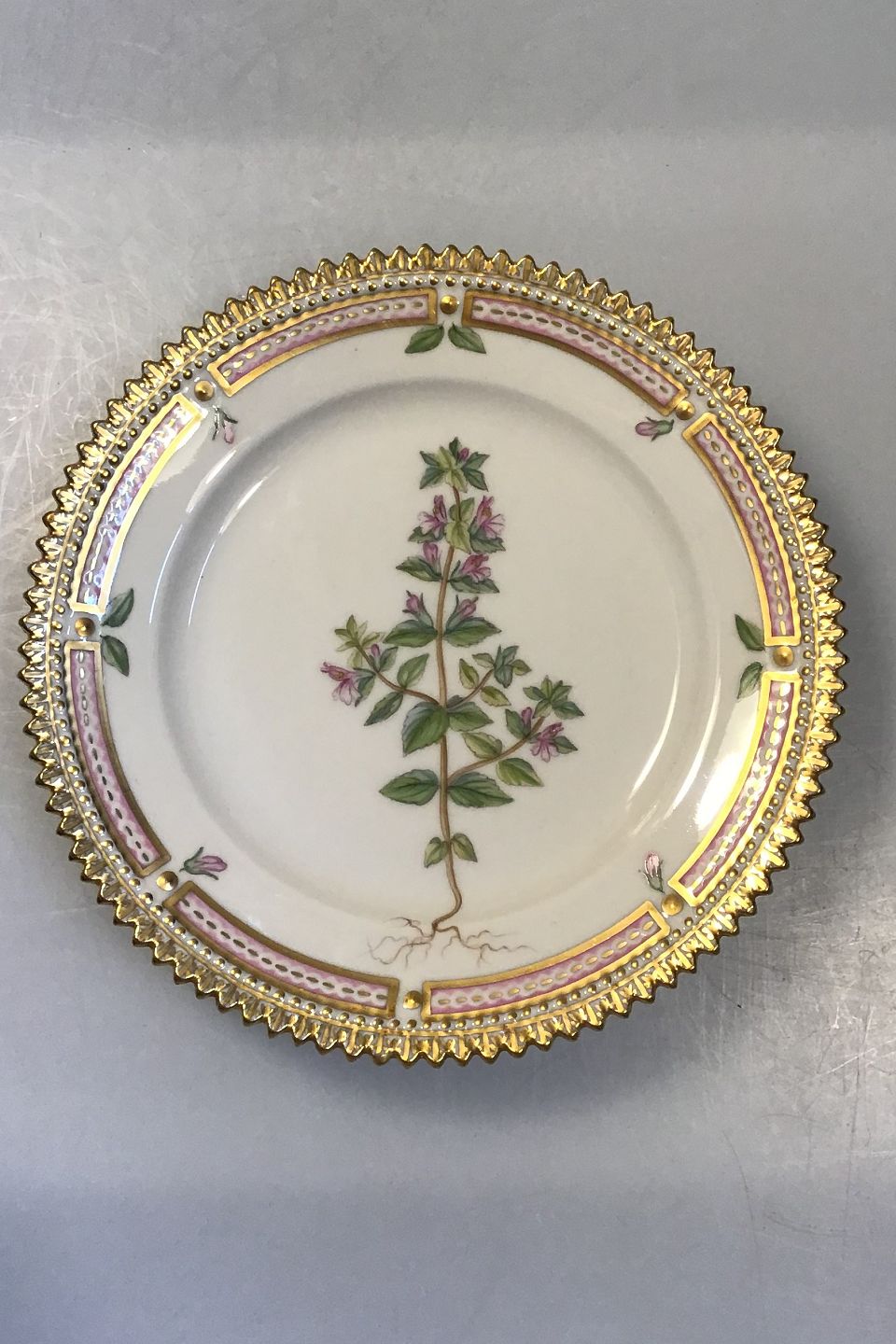 Royal Copenhagen Flora Danica Kagetallerken No 20/3552. Latinsk Navn: Euphrasia officinalis L(Kalk-øjentrøst) Måler 14,3 cm
