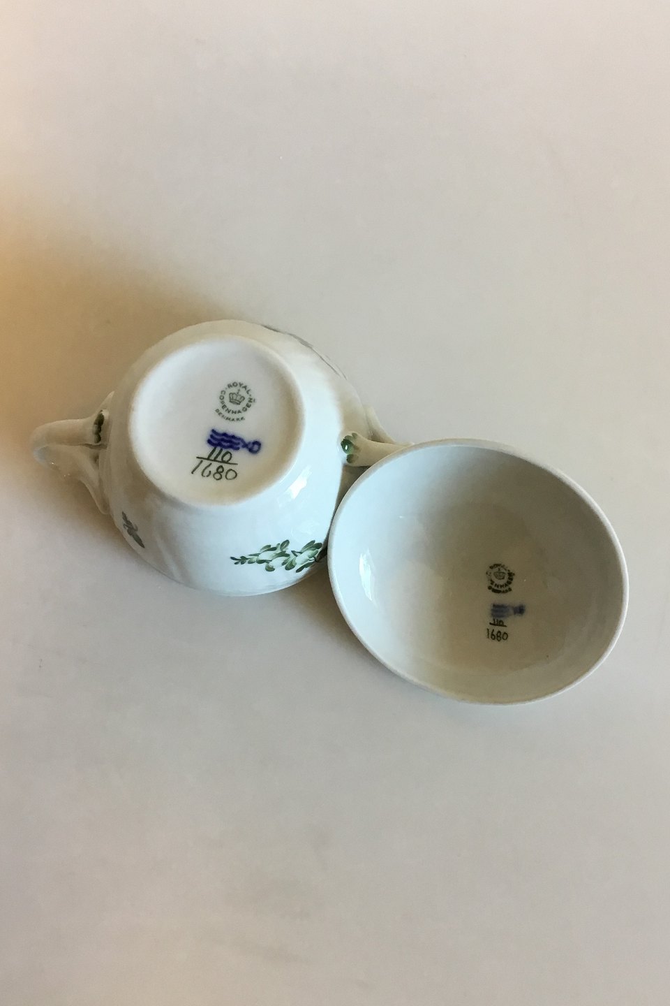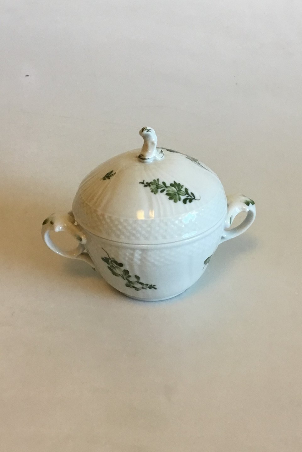 Royal Copenhagen Grøn Blomst Svejfet Sukkerskål No 1680. Måler 11 cm x 14,5 cm