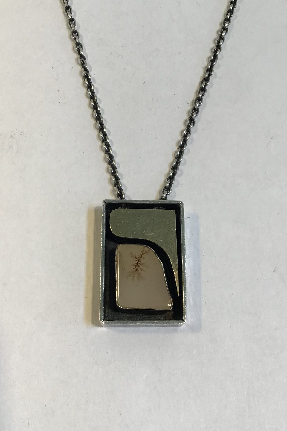 Ole Waldemar Jacobsen Sterling Sølv Halskæde/ Vedhæng med guldindlæg Måler 40 cm Vægt samlet 17.9 gr