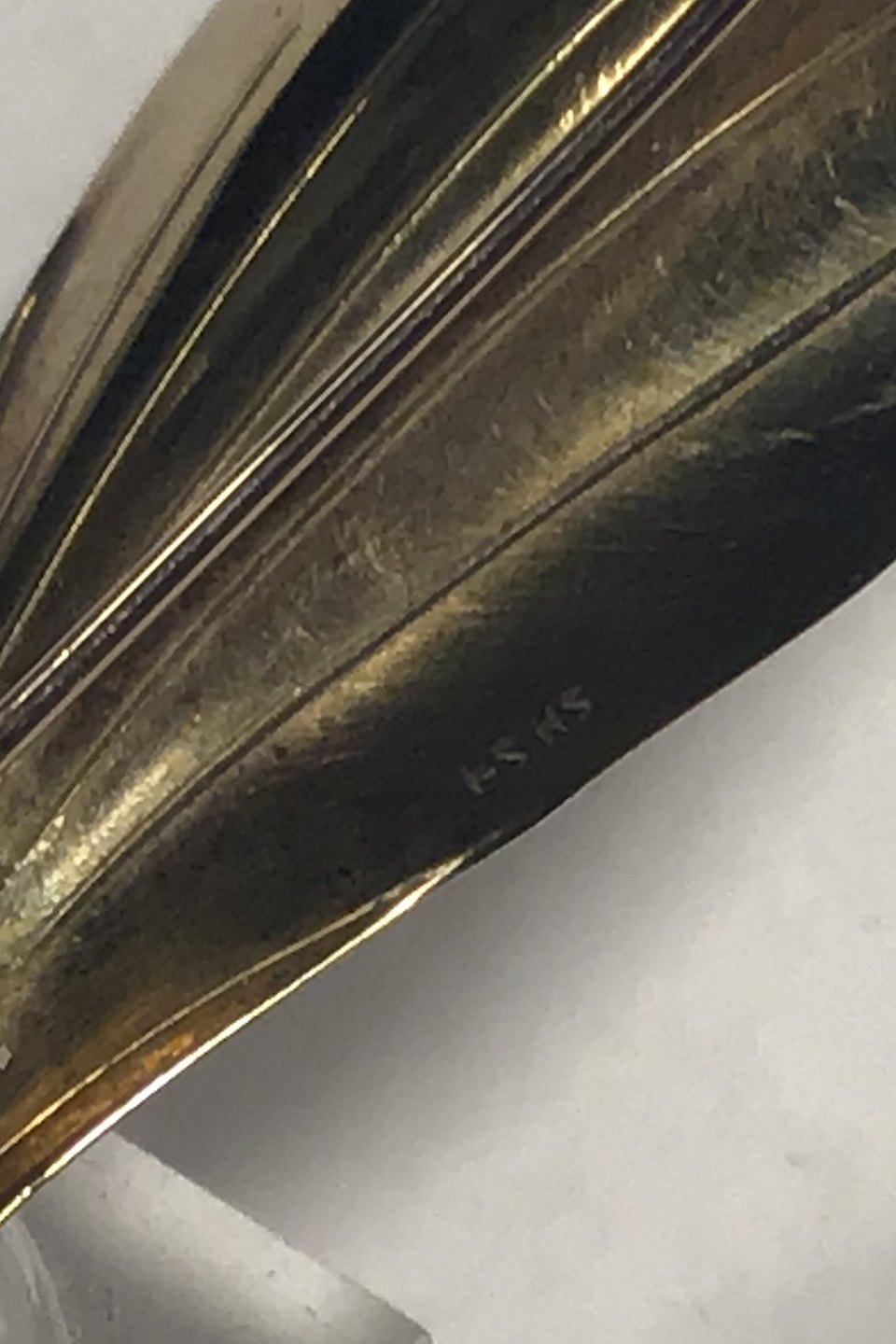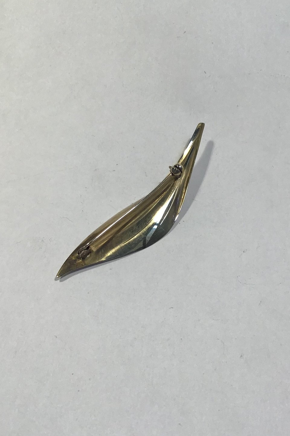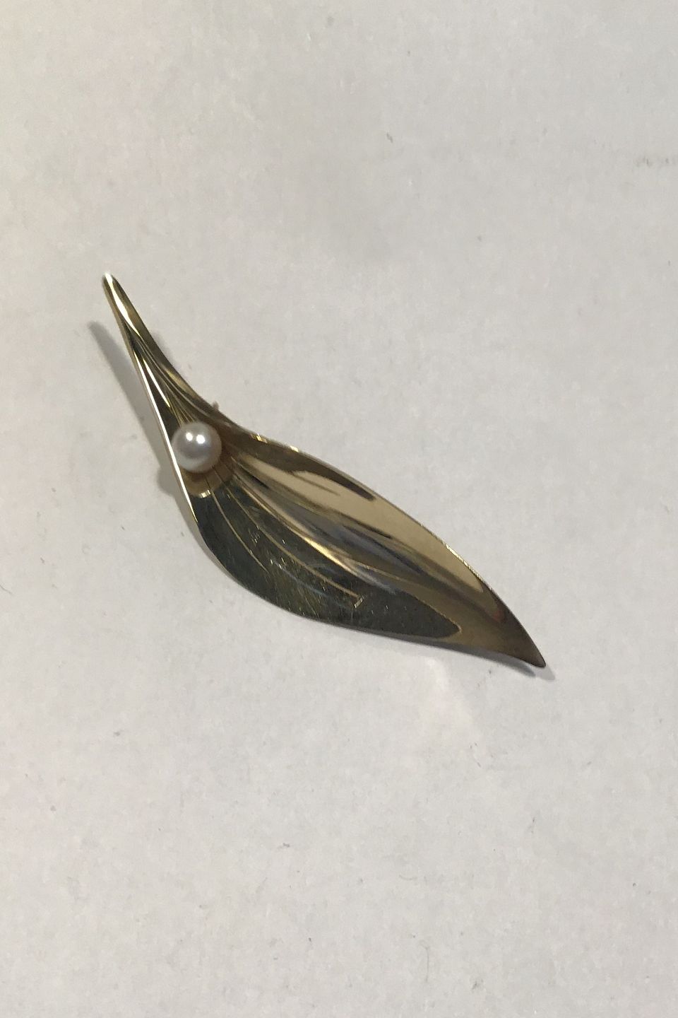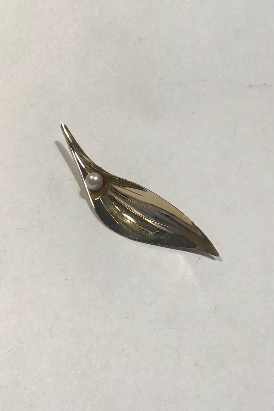 Hermann Siersbøl 8K Gold Brooch w Pearl Measures 1.7 cm x 7.2 cm(0.66 in x 2.83 in) Weight 3.7 gr/0.13 oz